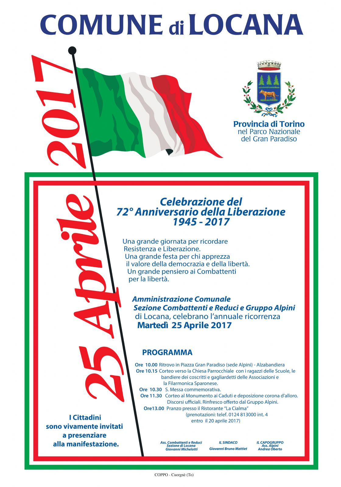 Celebrano l’annuale ricorrenza Lunedì 25 Aprile 2017