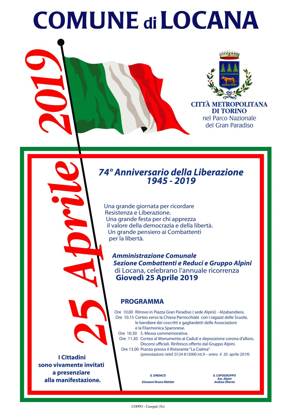 | Organizzazione | Comune di Locana, Ass. Alpini Locana |