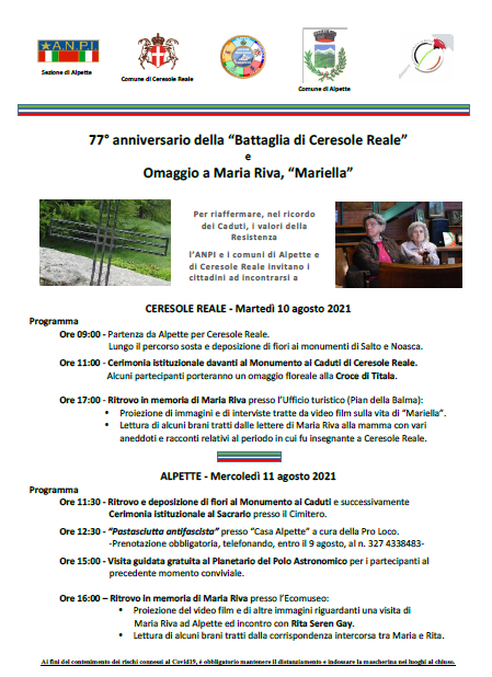 77° ANNIVERSARIO “BATTAGLIA DI CERESOLE REALE” e OMAGGIO A MARIA RIVA