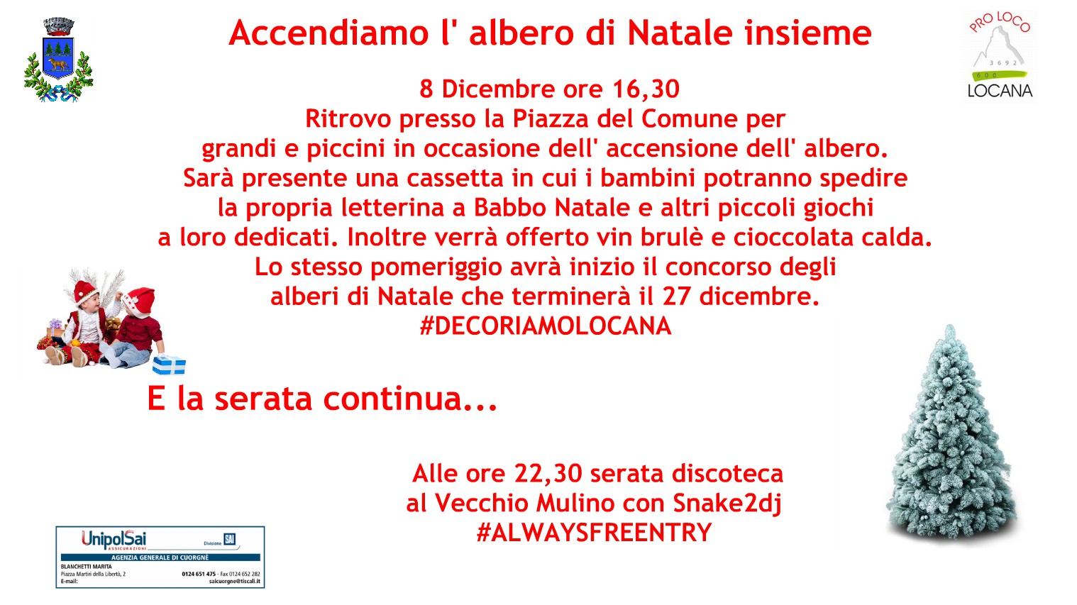Ritrovo presso la Piazza del Comune per grandi e piccini in occasione dell'accensione dell'albero.