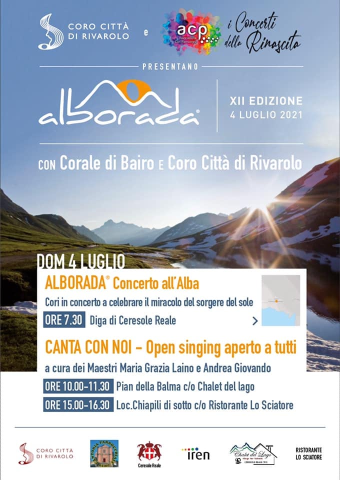 Cori in concerto a celebrare il miracolo della nascita del sole: la Corale di Bairo e il Coro Città di Rivarolo cantano alle 7,30 alla diga di Ceresole Reale