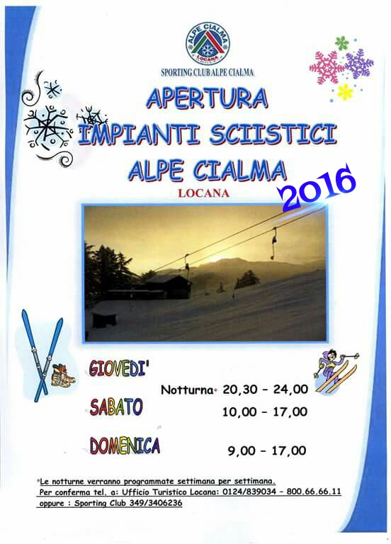 Apertura Impianti Sciistici Alpe Cialma 2016