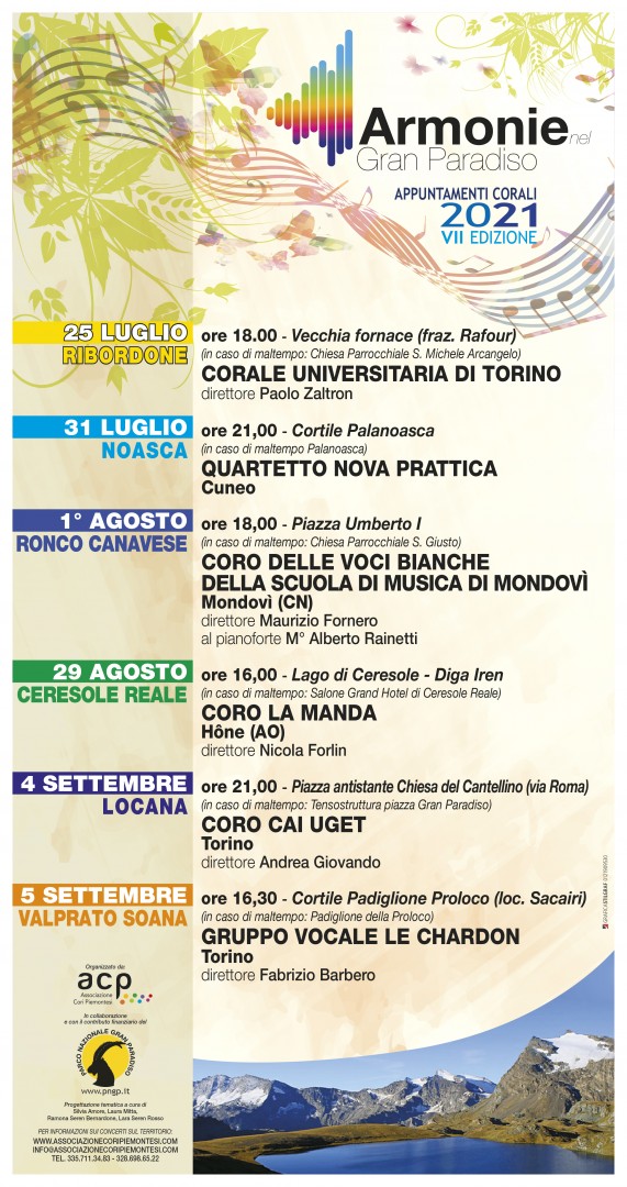 Per la rassegna Armonie alle ore 16,00 si esibisce presso la diga di Ceresole il Coro La manda di Hone (AO).