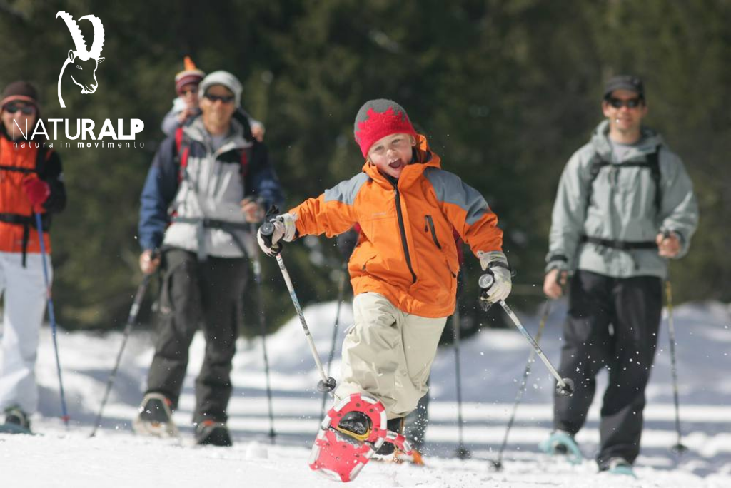 La gioia di camminare sulla neve si impara da piccoli, le sensazioni di morbidezza, l'odore della neve, il bosco fatato. Ciaspolata a misura di famiglia , adatta a bambini dai sette ai dodici anni.