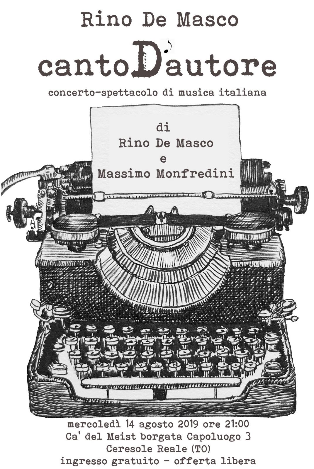 ore 21.00 presso Cà del Meist concerto-spettacolo di musica italiana di Rino De Masco e Massimo Monfredini