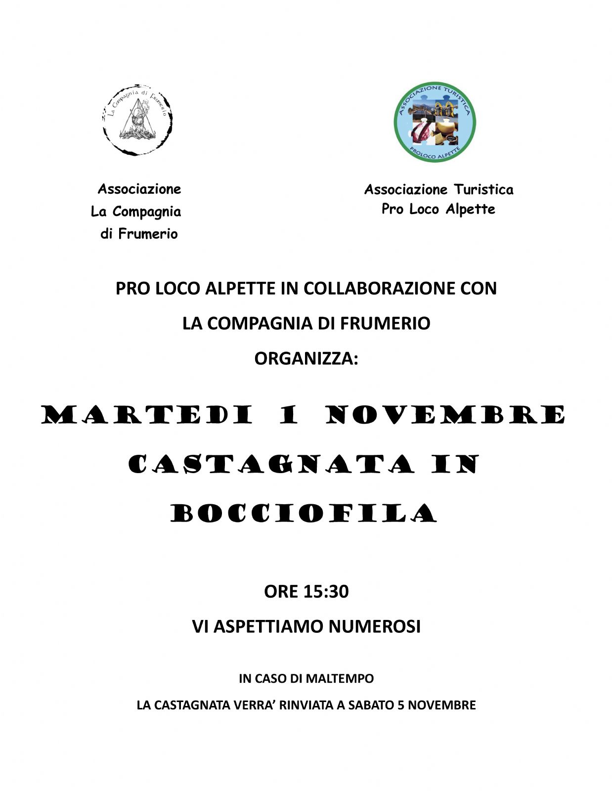 in caso di maltempo la castagnata verrà rinviata a sabato 5 novembre.