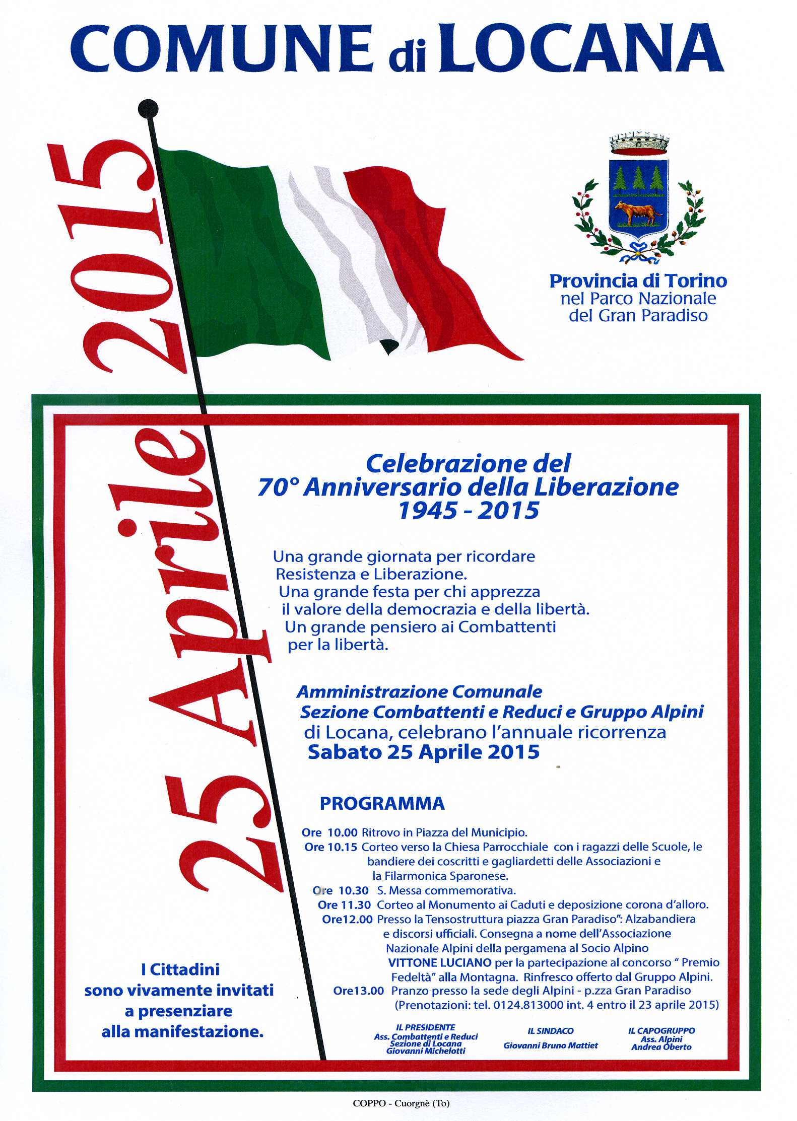 Ore 13.00 Pranzo presso la sede degli Alpini – p.zza Gran Paradiso (prenotazioni: telef. 0124 81.3000 int.4 - entro il 23 aprile 2015)