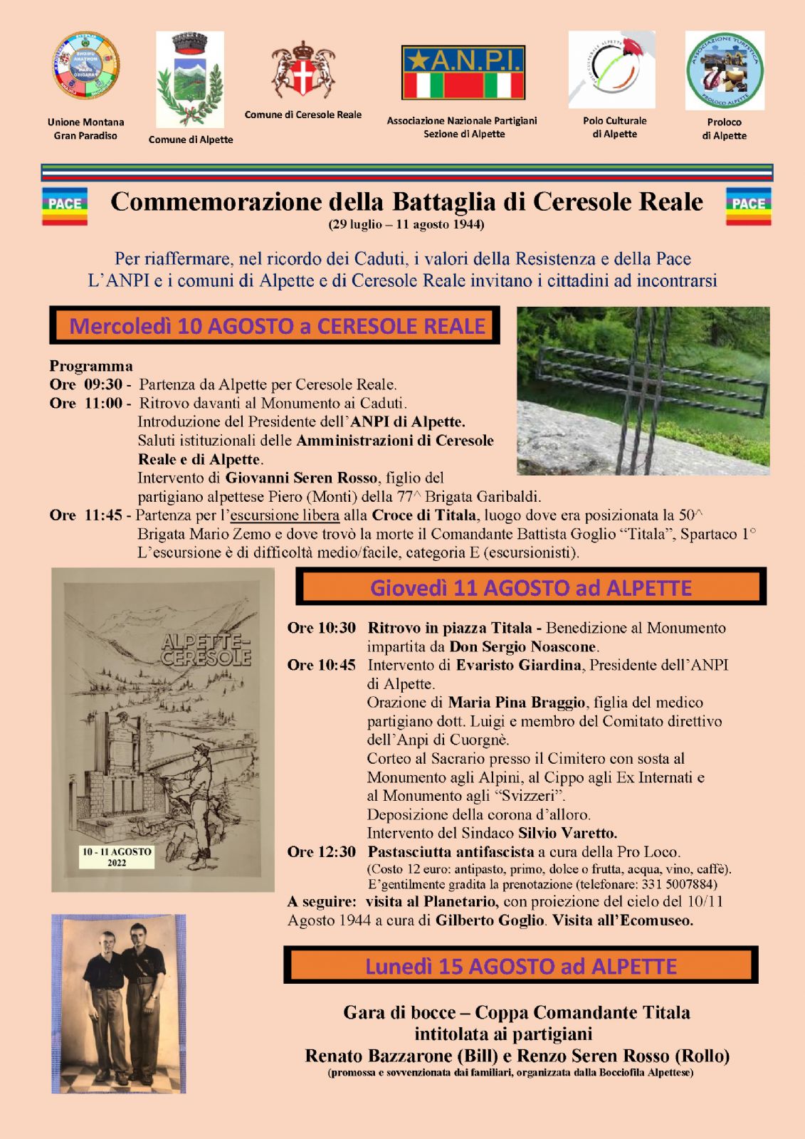l’anpi e i comuni di alpette e di ceresole reale invitano i cittadini ad incontrarsi: