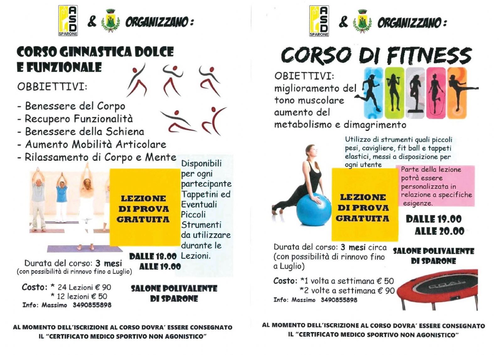 CORSO DI FITNESS e CORSO GINNASTICA DOLCE e FUNZIONALE