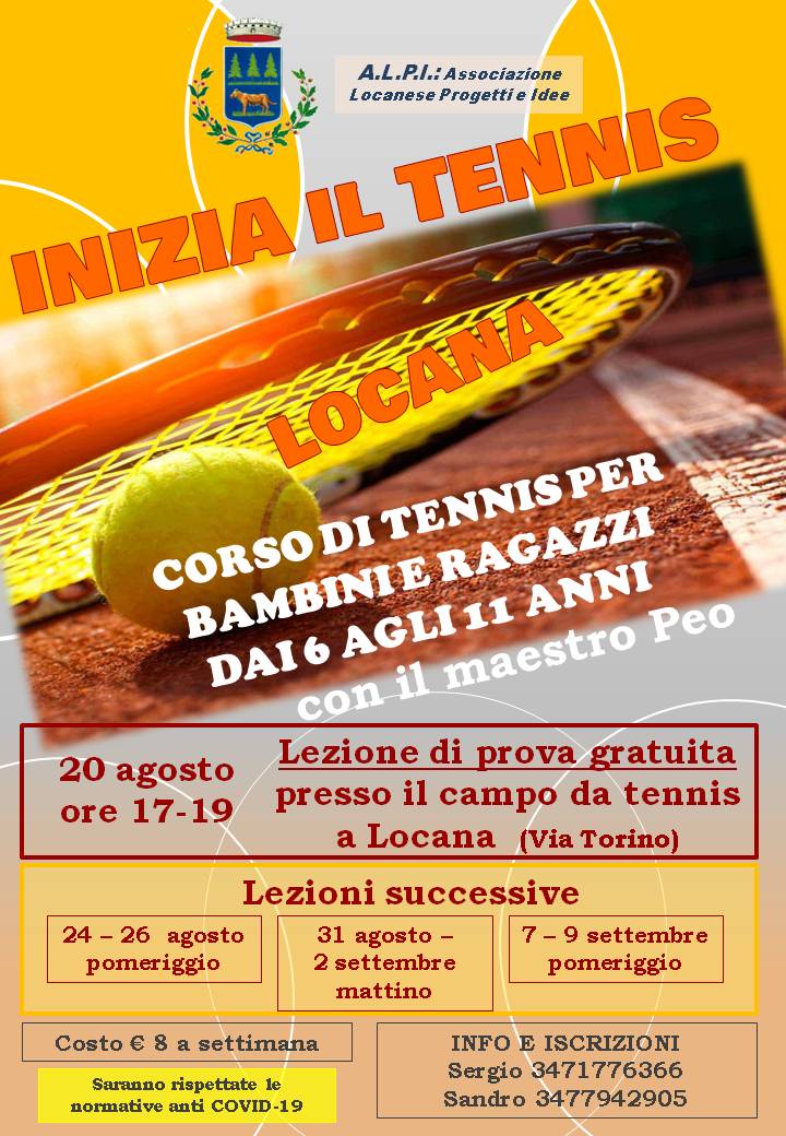 20 Agosto lezione di prova gratuita, presso il campo da tennis a Locana in Via Torino