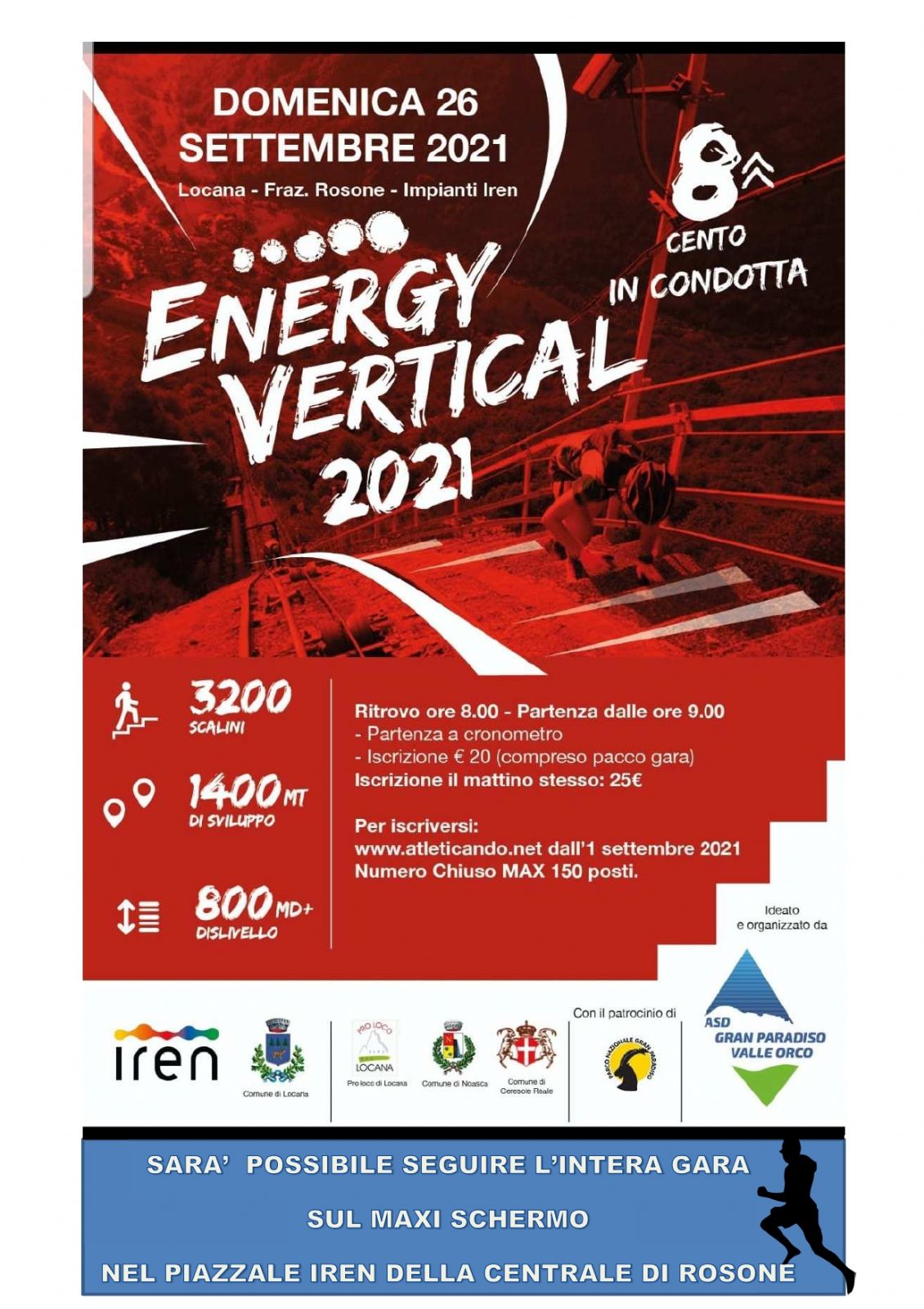 Sara’ possibile seguire l’intera gara sul maxi schermo, nel Piazzale Iren della centrale di Rosone