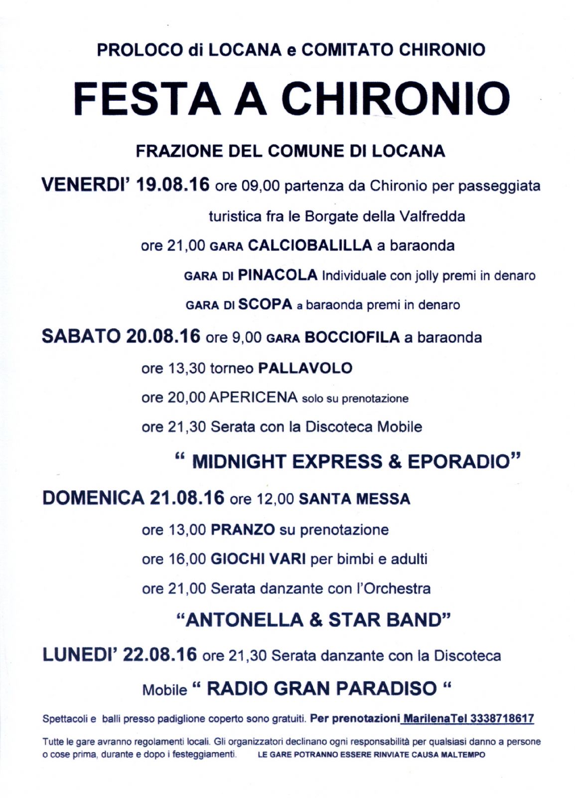 | Organizzazione | Comitato Chironio, Pro-loco Locana |