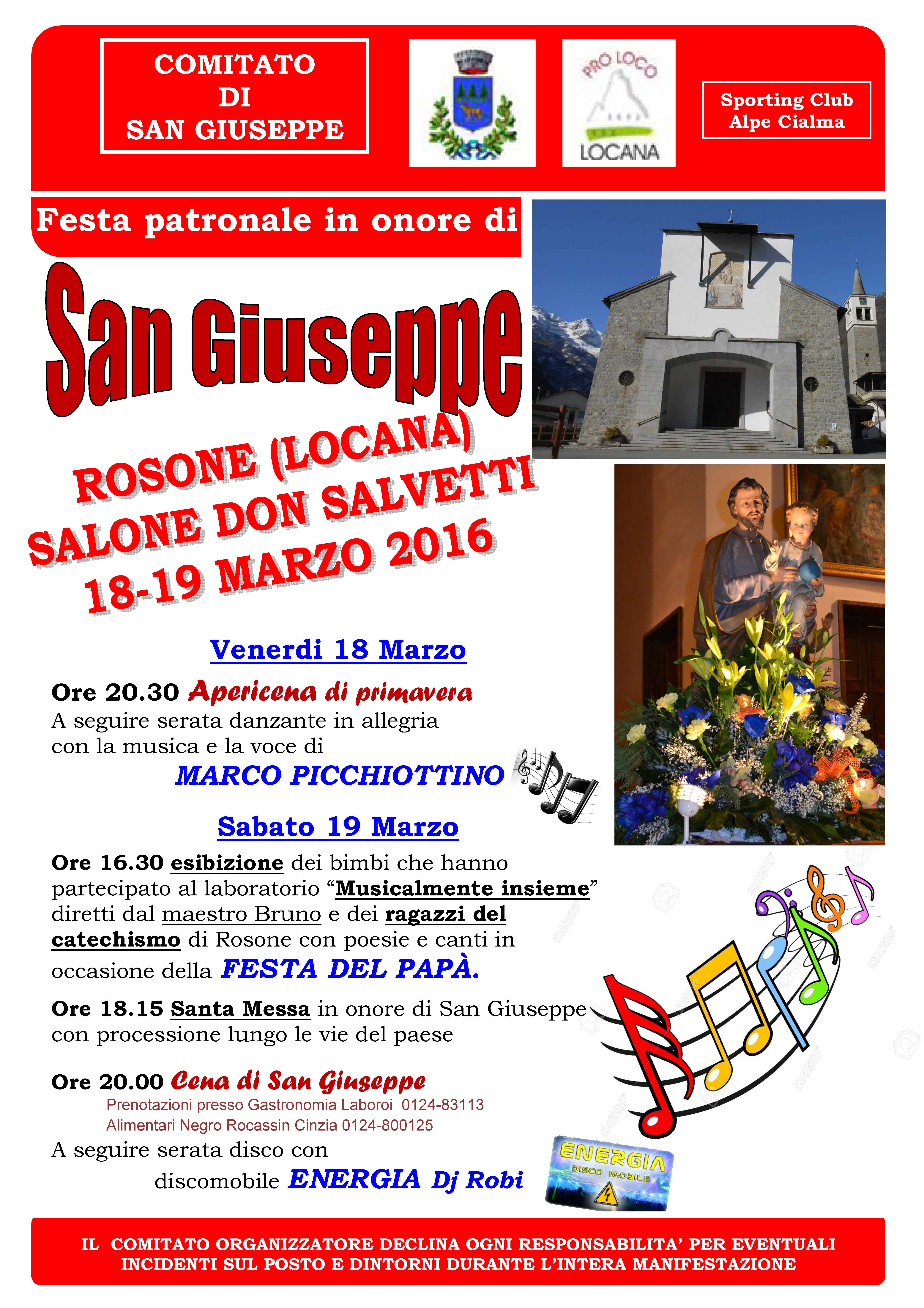 Ore 18.15 Santa Messa in onore di San Giuseppe con processione lungo le vie del paese