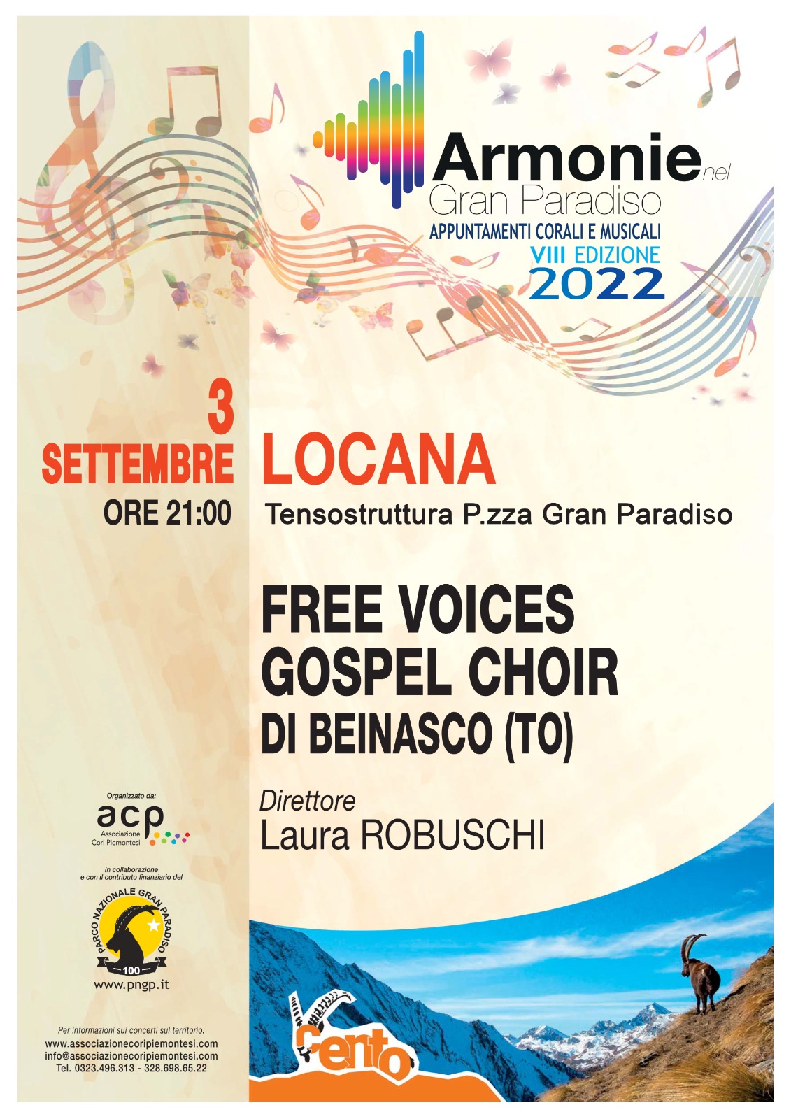 ore 21.00 Coro Armonie del Parco "Free Voices Gospel Choir" - Tensostruttura P.zza Gran Paradiso