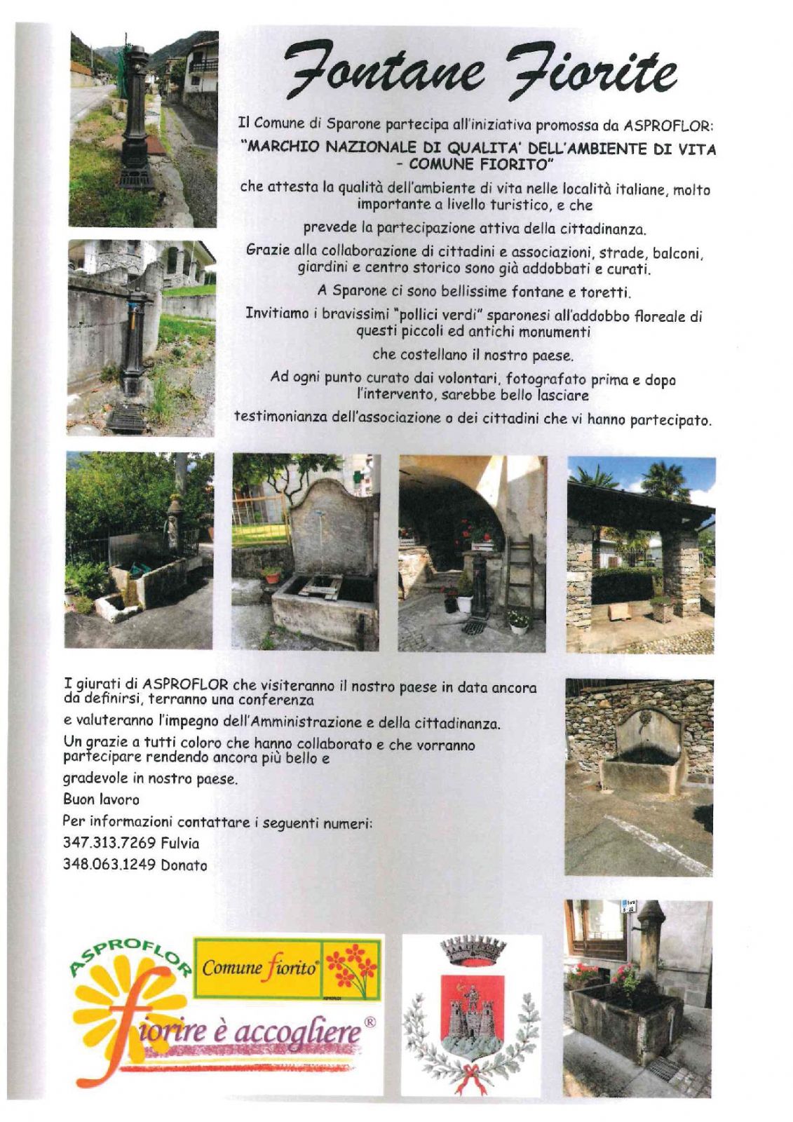 Il comune di Sparone partecipa all'iniziativa promossa da ASPROFLOR "MARCHIO NAZIONALE DI QUALITA' DELL'AMBIENTE DI VITA - COMUNE FIORITO! ed invita i bravissimi "pollici verdi" all'addobbo floreale di questi piccoli ed antichi monumenti che costellano il nostro paese.