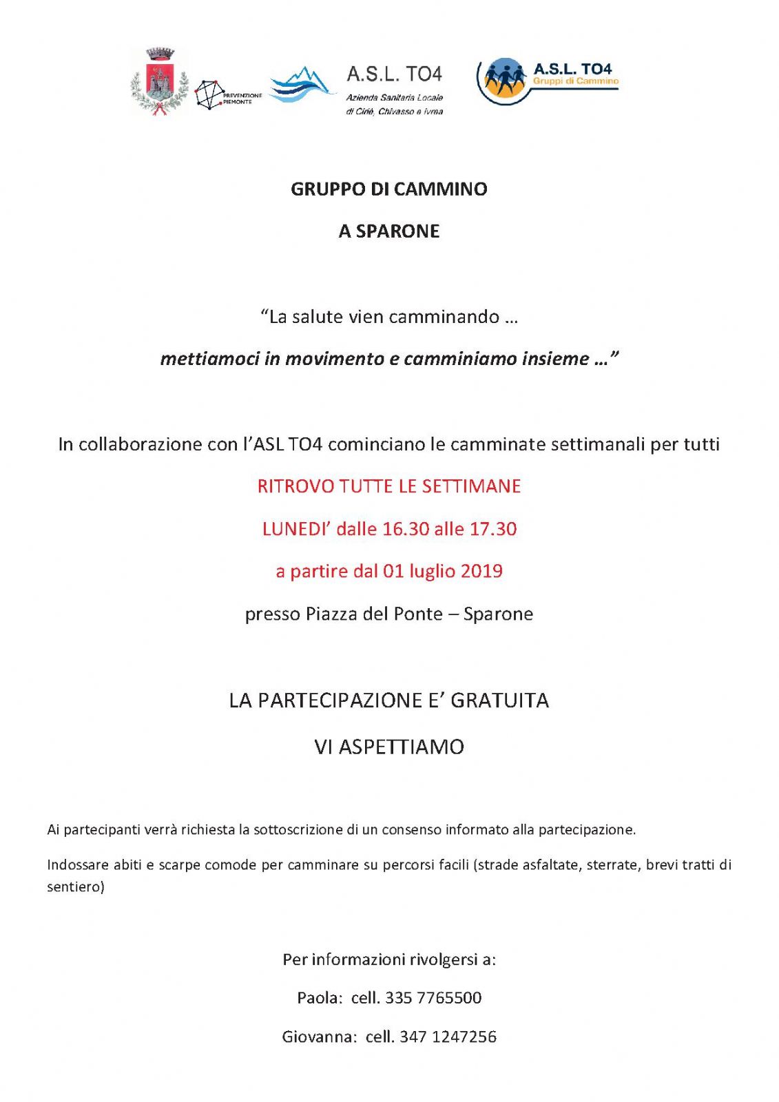 | Organizzazione | COMUNE DI SPARONE - A.S.L. TO4 - ASLTO GRUPPI DI CAMMINO |
