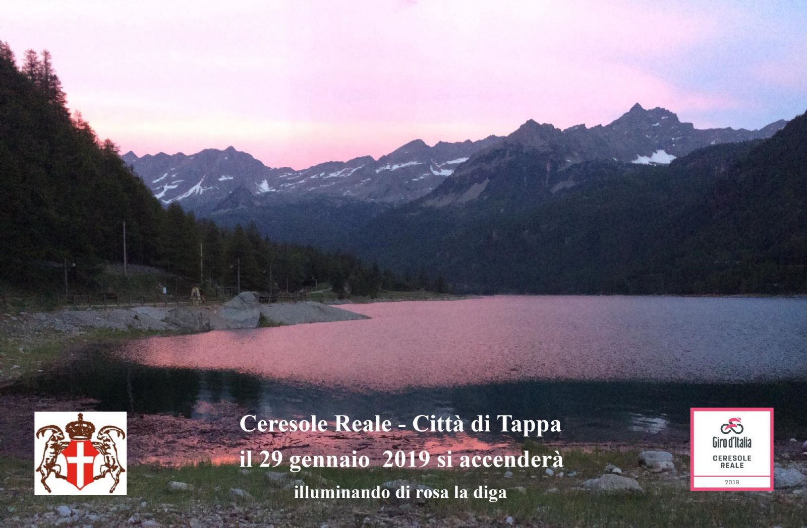 primo grande appuntamento che vede coinvolte tutte le città di tappa del Giro d’Italia 2019 e l’Italia si accenderà di rosa; Ceresole Reale, essendo Città di Tappa, parteciperà a questo appuntamento molto importante e provvederà a illuminare di rosa un punto caratteristico della propria città (la diga)