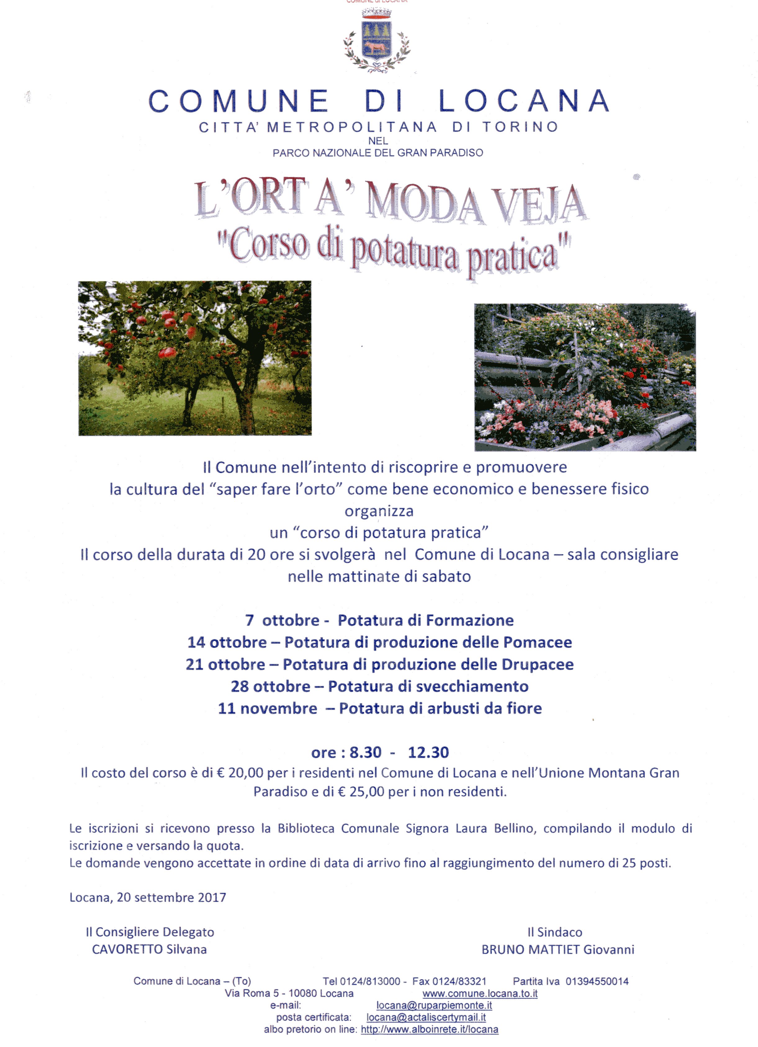 Il Comune nell'intento di riscoprire e promuovere la cultura del "saper fare l'orto" come bene economico e benessere fisico organizza un "Corso di potatura pratica".