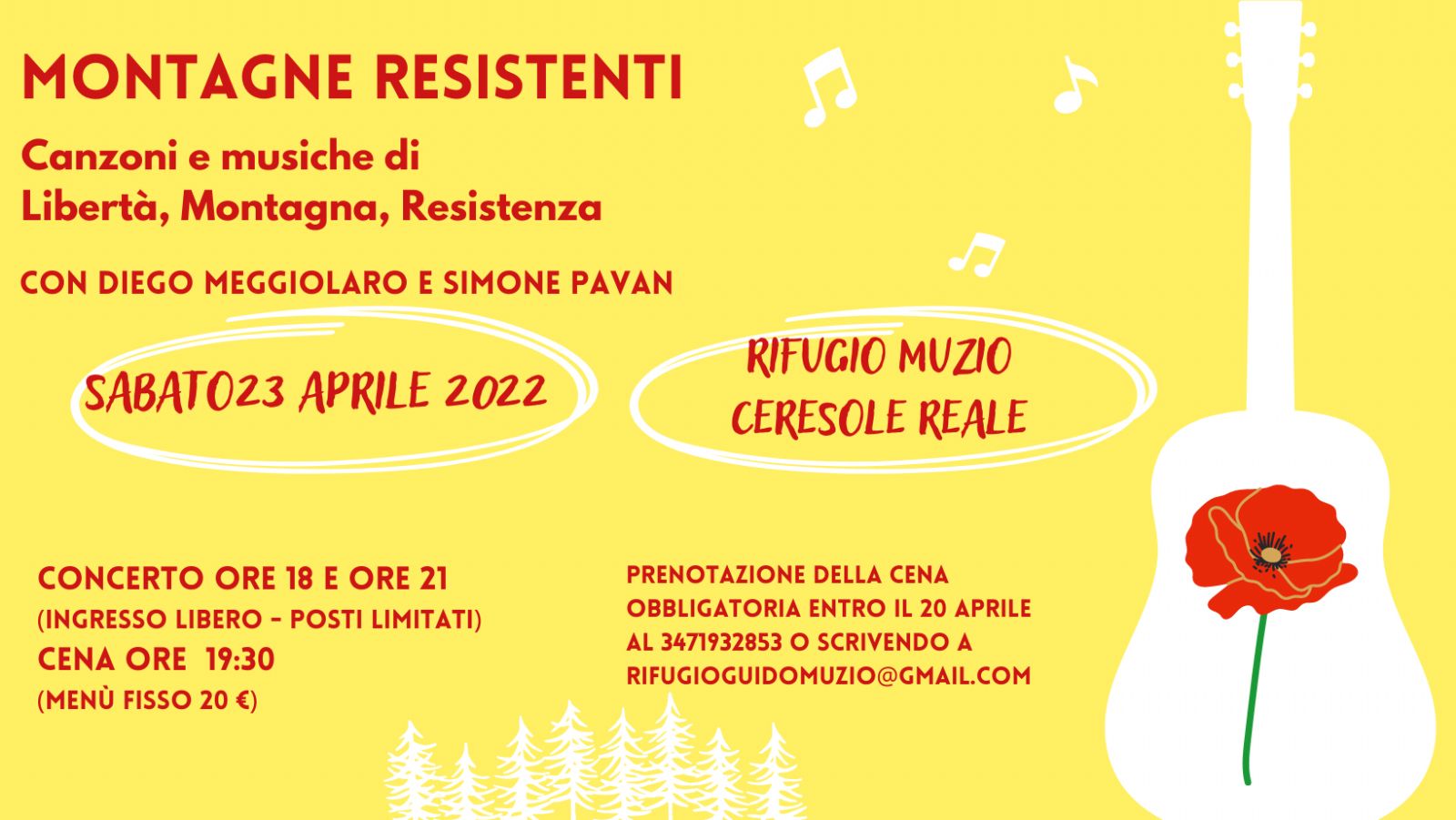 Info e prenotazioni chiamando il 3471932853 o scrivendo a rifugioguidomuzio@gmail.com
