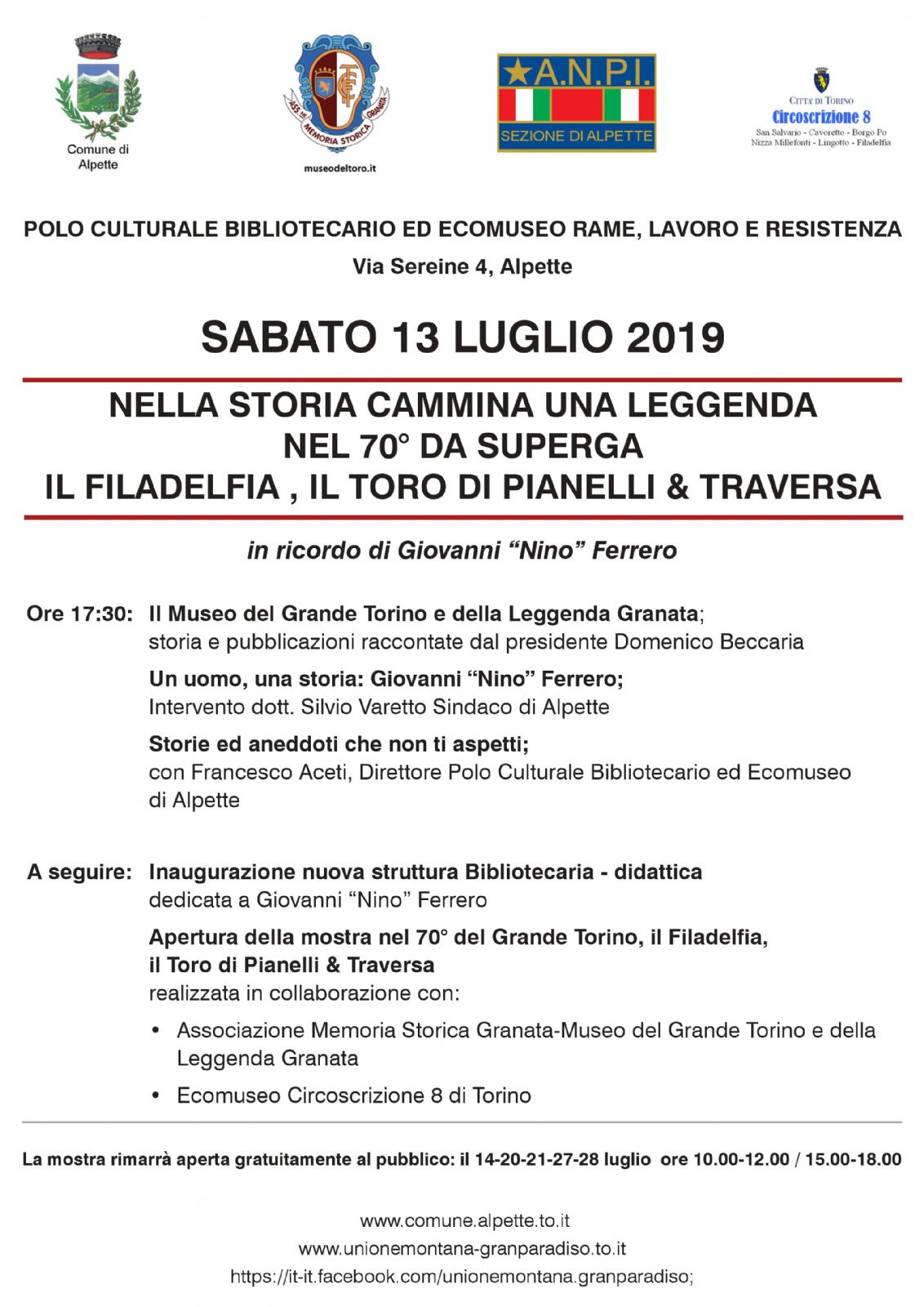 | Organizzazione | Comune di Alpette, A.N.P.I. |