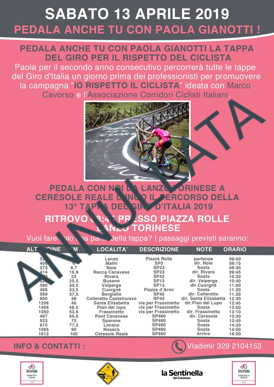 con immenso RAMMARICO, siamo costretti a rinviare la manifestazione/pedalata prevista per sabato 13 aprile p.v che avrebbe ripercorso la parte stradale "canavesana" della 13° tappa del 102° Giro d’Italia, con partenza da Lanzo Canavese e arrivo a Ceresole Reale.