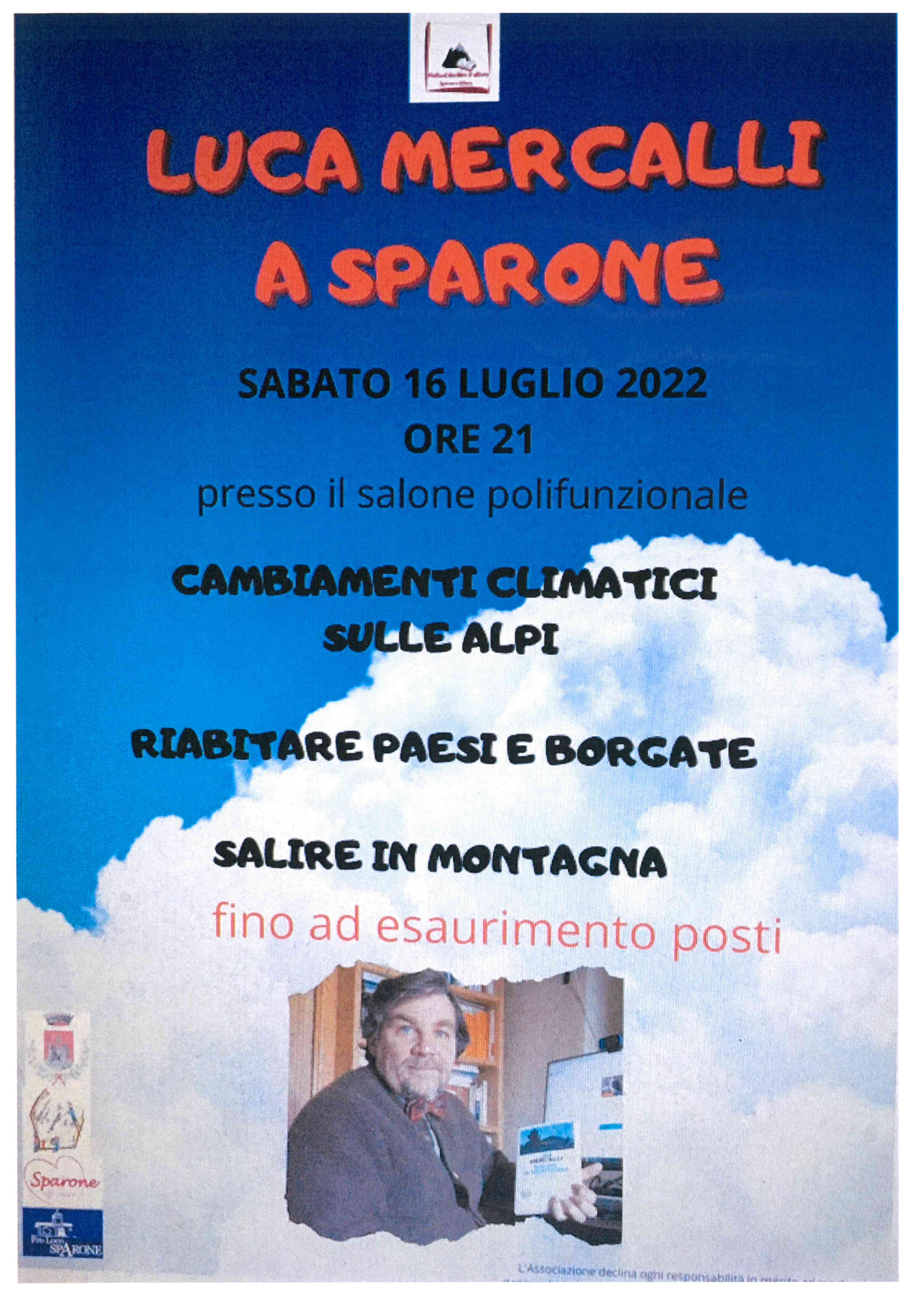 Sabato 16 luglio 2022 ore 21, presso Salone Polivalente, Luca Mercalli parlerà di cambiamenti climatici sulle Alpi e vita in montagna.