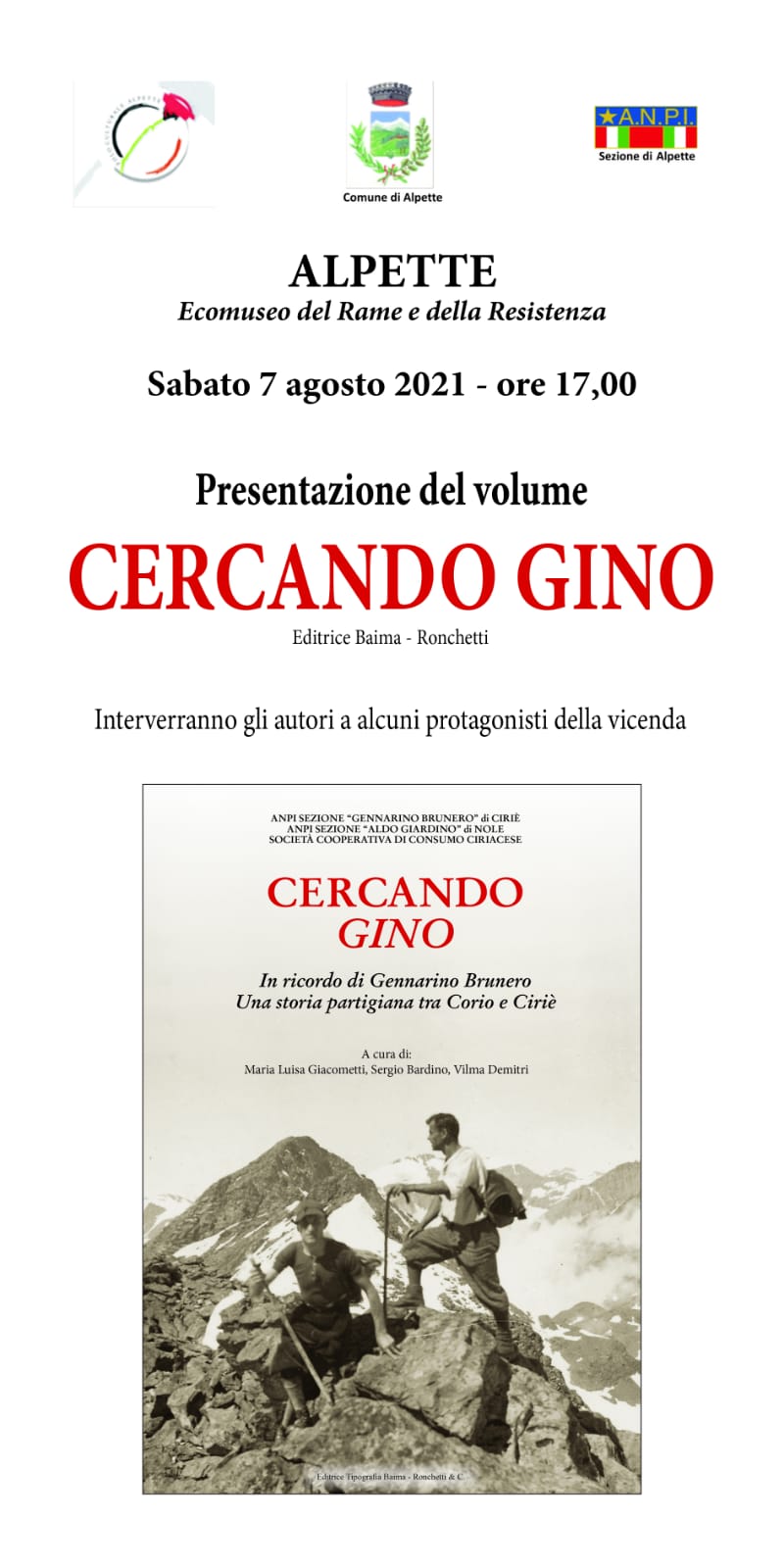 Presentazione del volume "Cercando Gino" con autori e protagonisti stessi della vicenda, presso Ecomuseo del Rame, Lavoro e Resistenza.