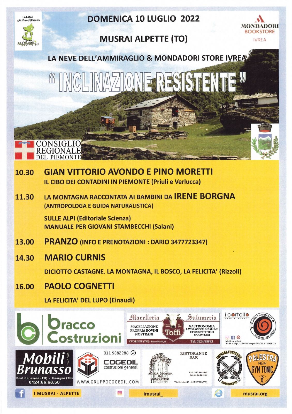 Manifestazione culturale organizzata dall'associazione "la neve dell'ammiraglio" in collaborazione con "Mondadori store ivrea" - domenica 10 luglio 2022 - dalle ore 10,30 presso la Località Musrai.