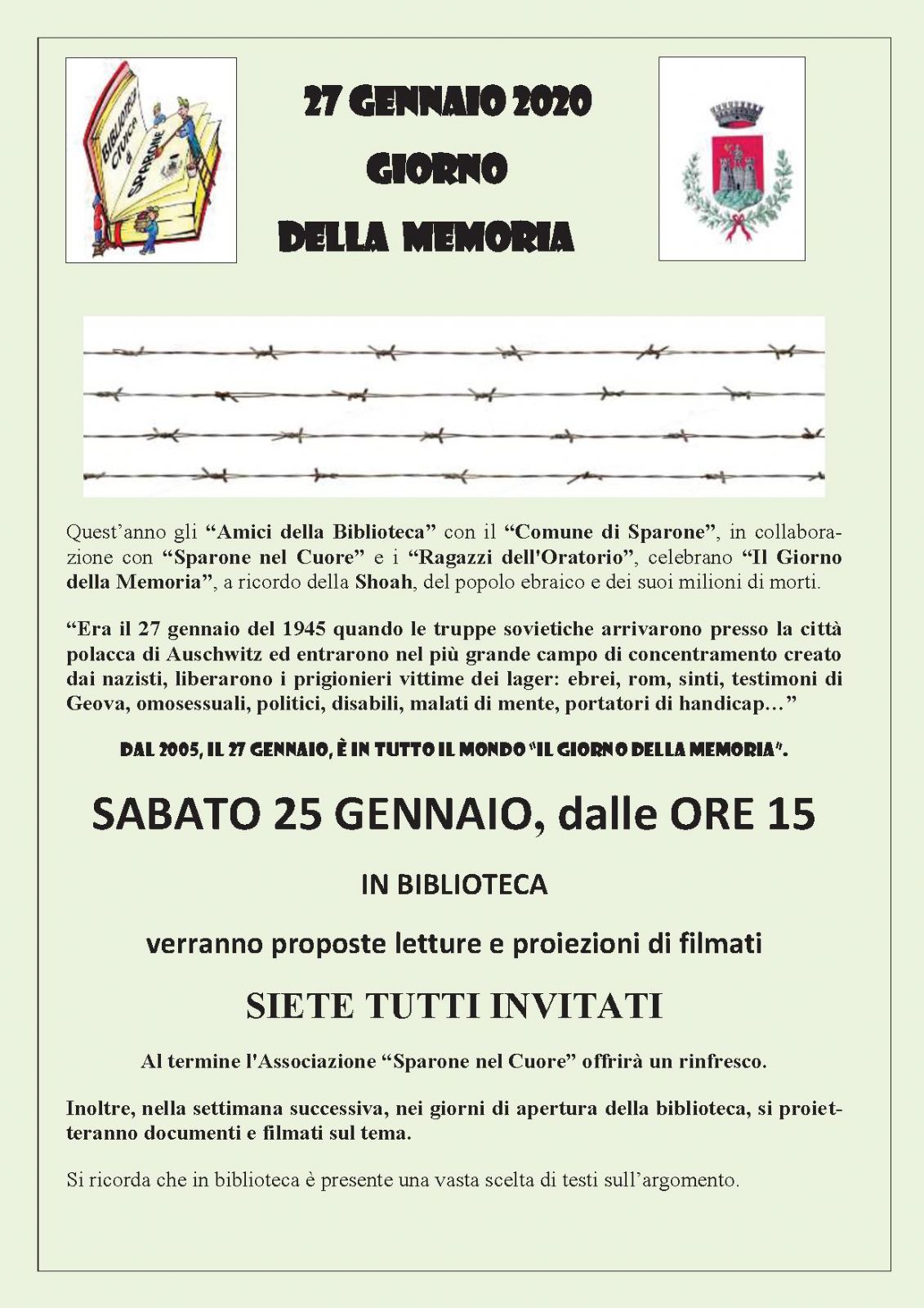 Sabato 25 gennaio ore 15.00 - GIORNO DELLA MEMORIA - BIBLIOTECA DI SPARONE