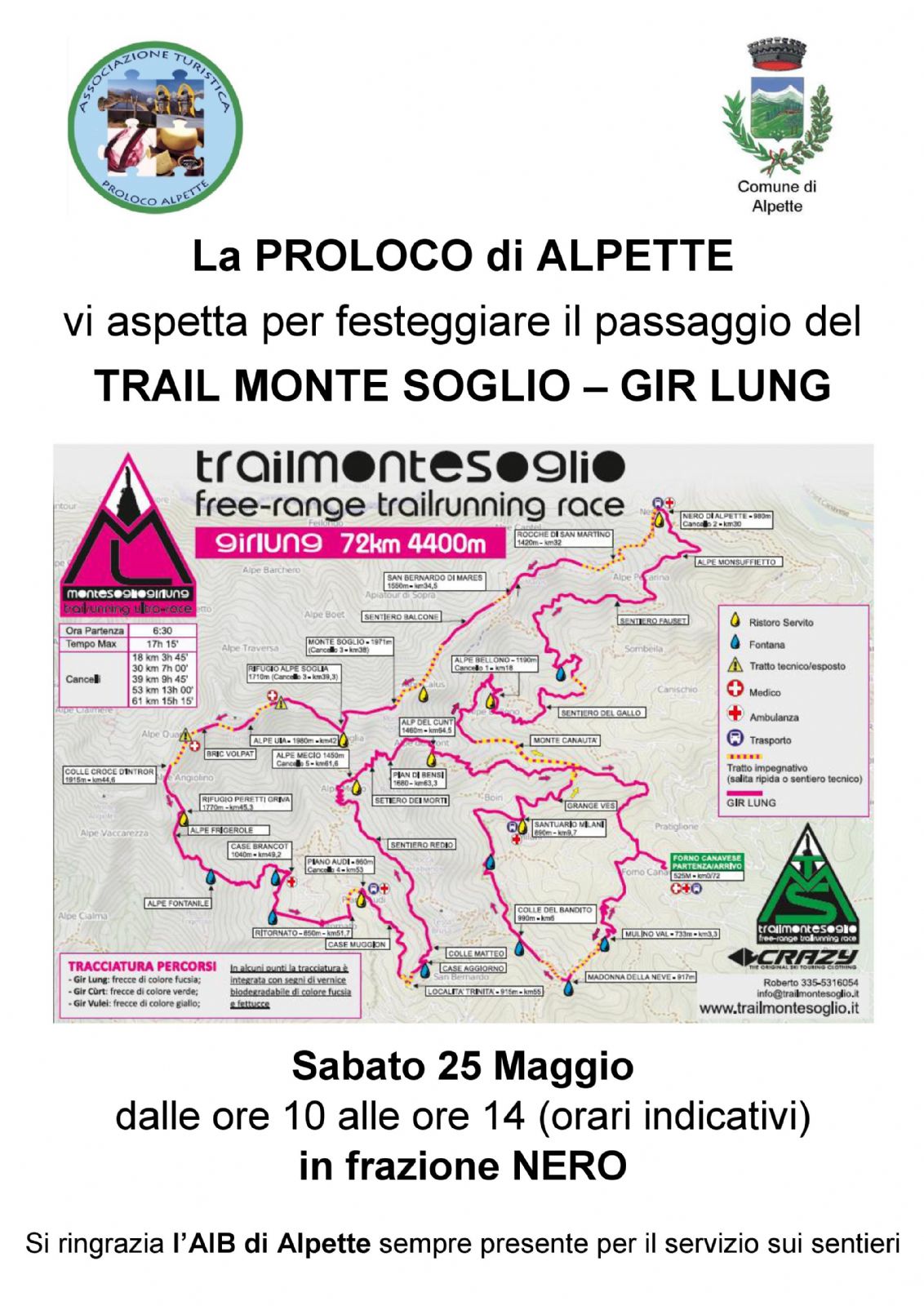 Si ringrazia l’AIB di Alpette sempre presente per il servizio sui sentieri