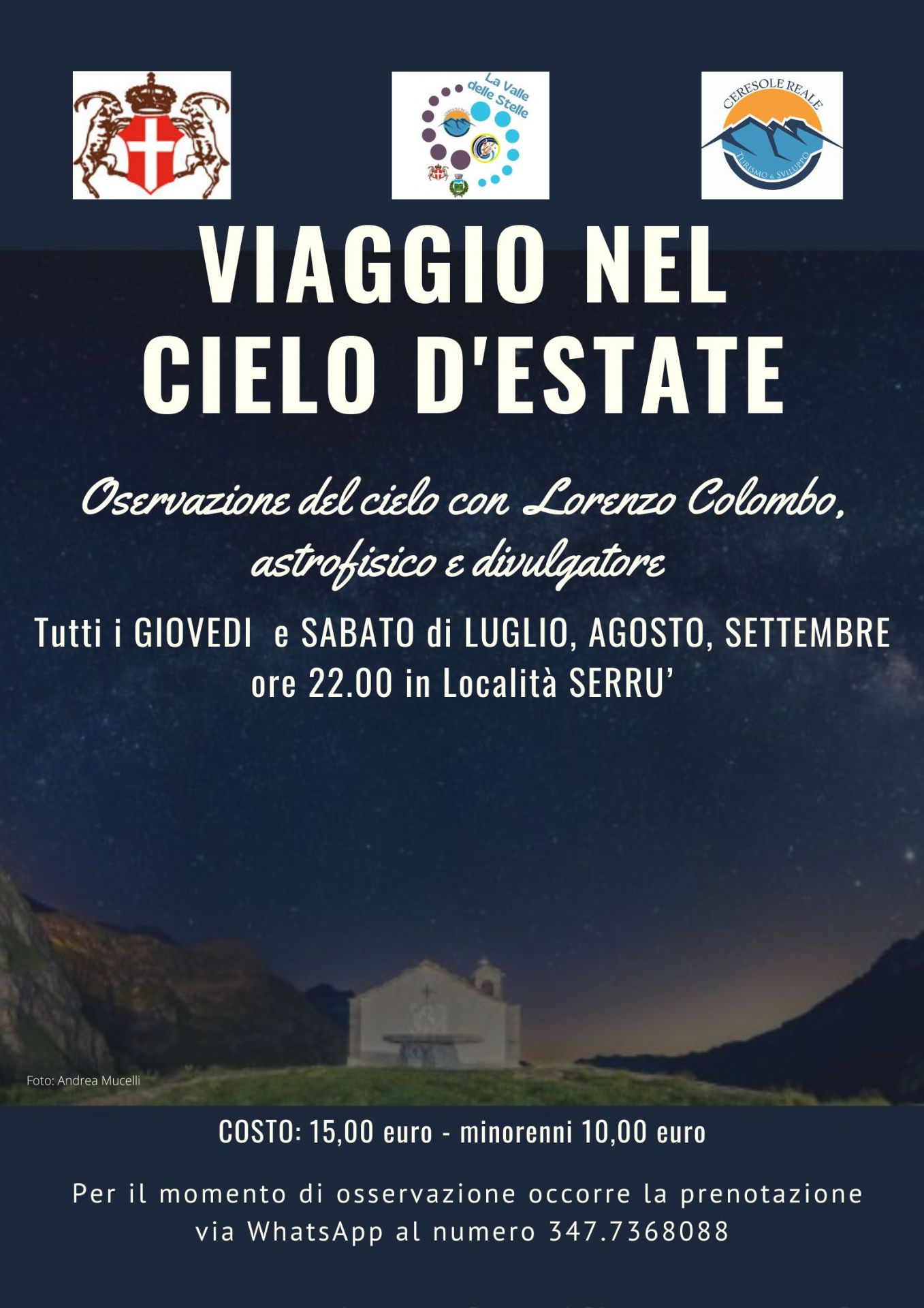 Si ricorda di portare una pila frontale o torcia elettrica, scarpe comode e abbigliamento adatto alle temperature notturne in quota. Posti limitati.