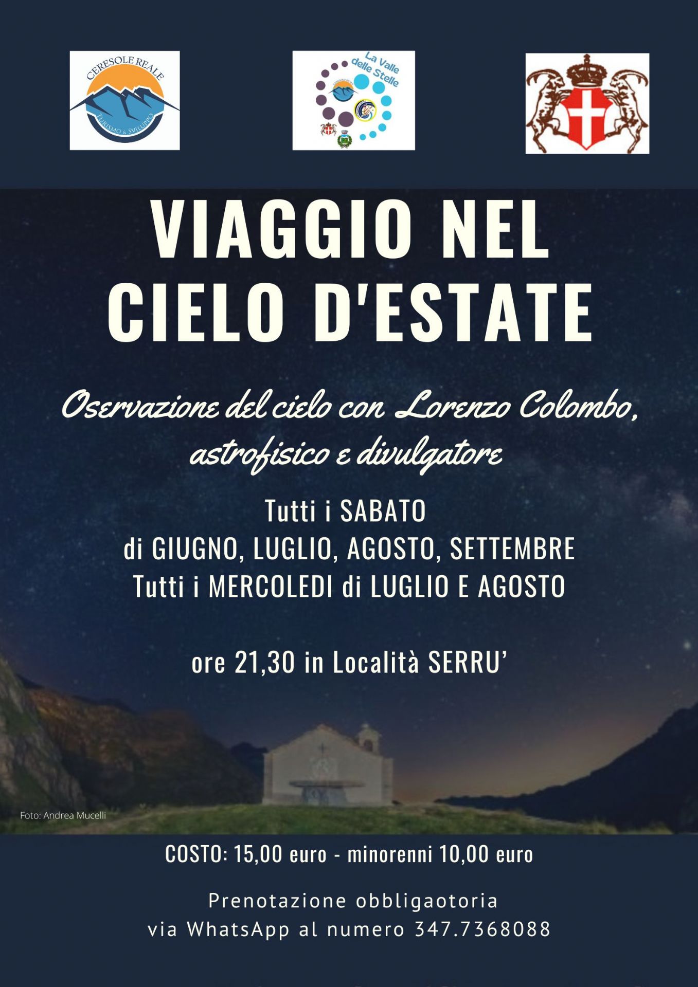 Si ricorda di portare una pila frontale o torcia elettrica, scarpe comode e abbigliamento adatto alle temperature notturne in quota. Posti limitati.