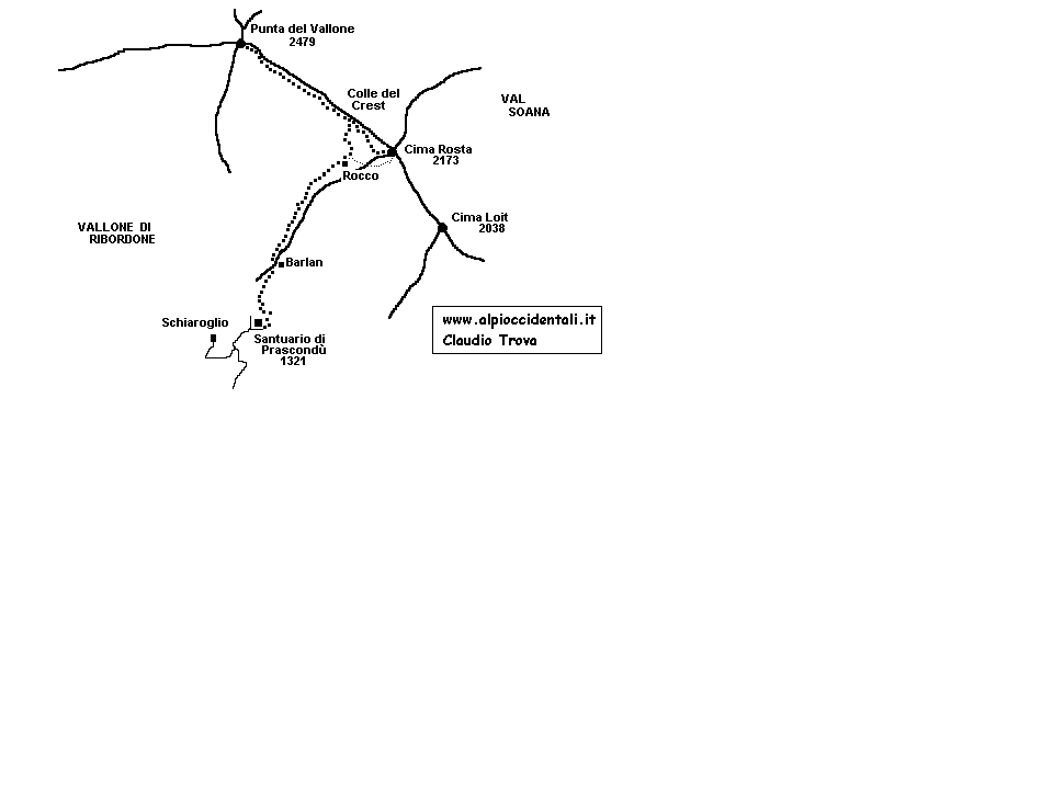 L'escursione parte da una delle località più famose di tutto il Canavese, il santuario seicentesco di Prascondù, dove ogni anno il 27 agosto si festeggia il patrono.