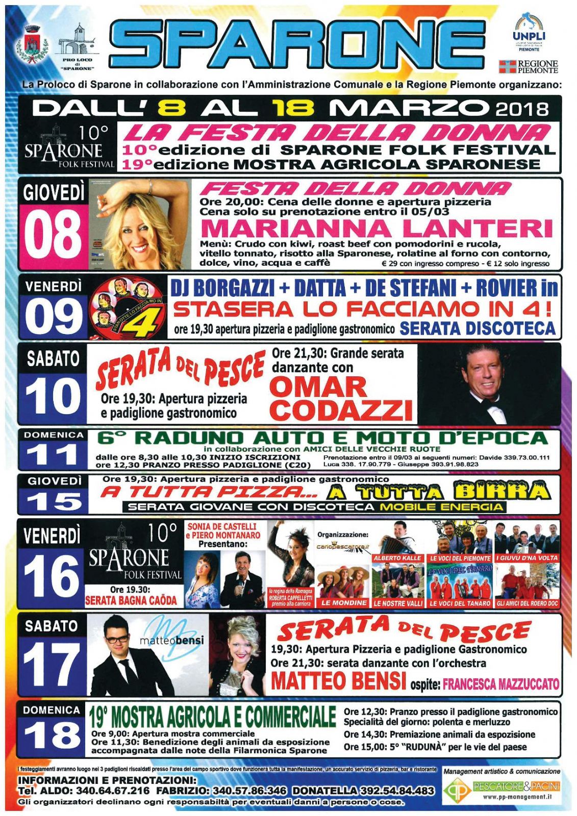 Dall'8 al 18 marzo 2018 la Proloco di Sparone in collaborazione con l'Amministrazione Comunale e la Regione Piemonte organizzano: 10° Edizione di SPARONE FOLK FESTIVAL e 19° Edizione MOSTRA AGRICOLA SPARONESE