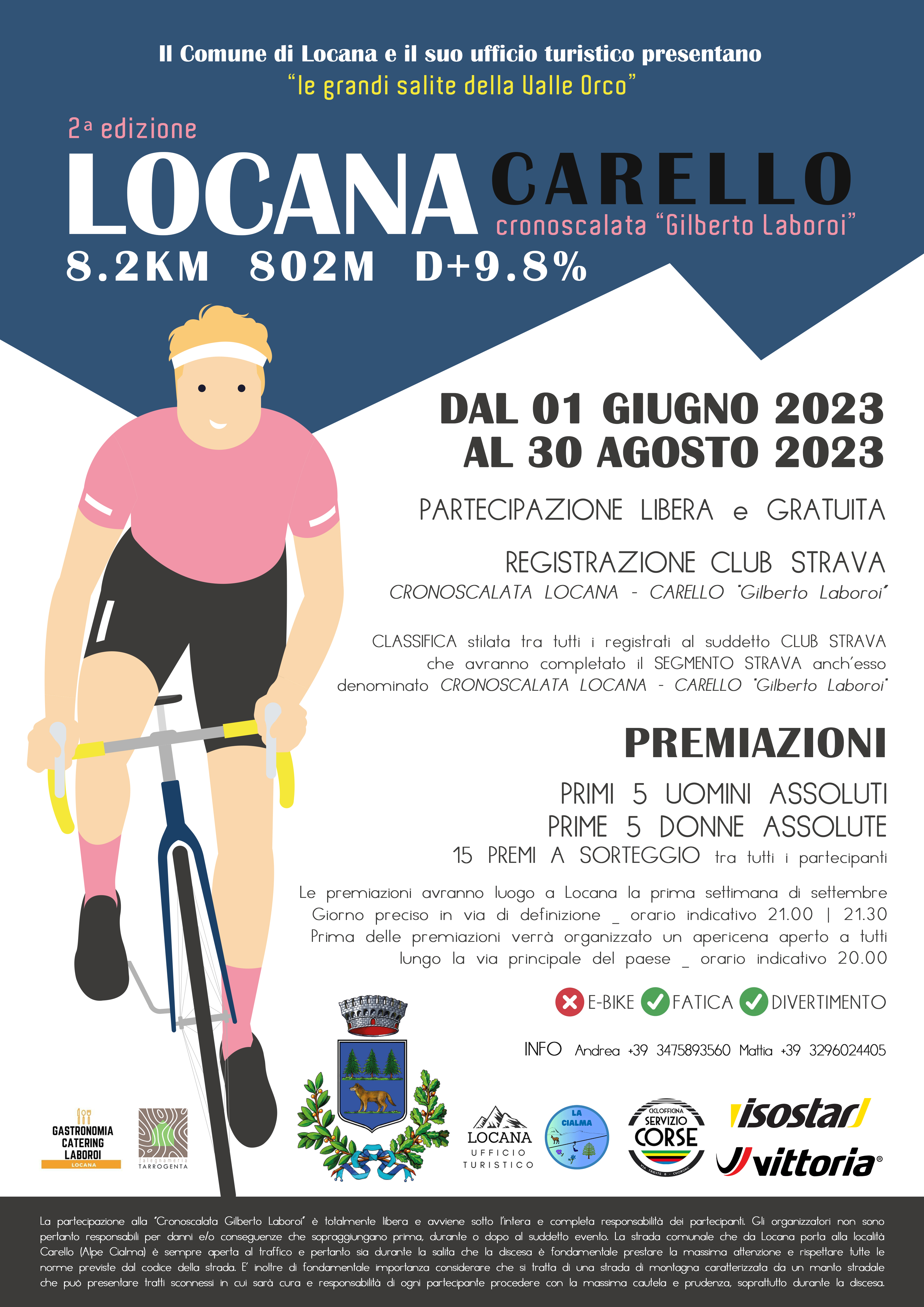 Classifica stilata tra tutti i registrati al suddetto CLUB STRAVA che avranno completato il segmento strava anch'esso denominato CRONOSCALATA LOCANA - CARELLO "Gilberto Laboroi".