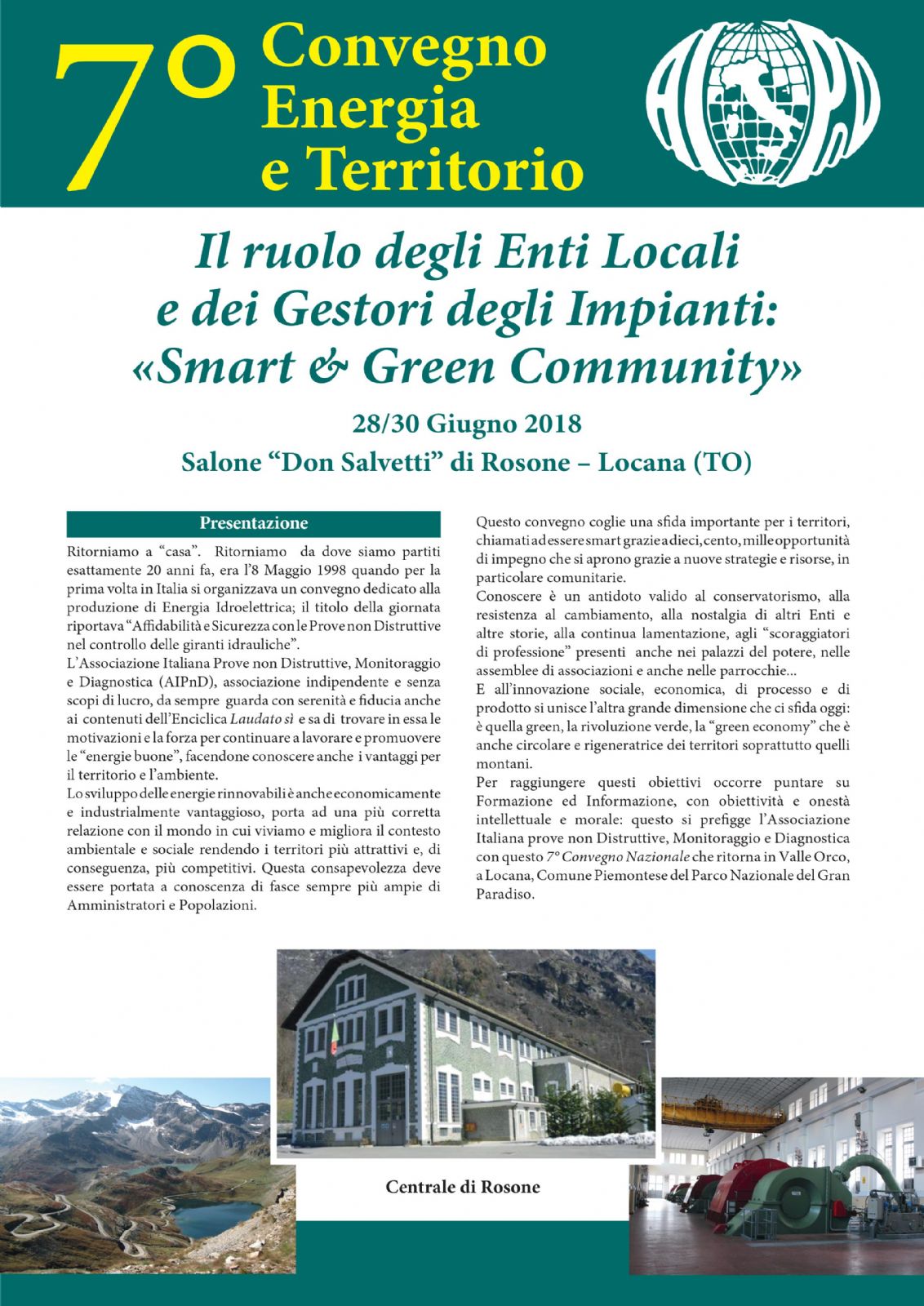 Per raggiungere questi obiettivi occorre puntare su Formazione ed Informazione, con obiettività e onestà intellettuale e morale: questo si prefigge l’Associazione Italiana prove non Distruttive, Monitoraggio e Diagnostica con questo 7° Convegno Nazionale che ritorna in Valle Orco, a Locana, Comune Piemontese del Parco Nazionale del Gran Paradiso.