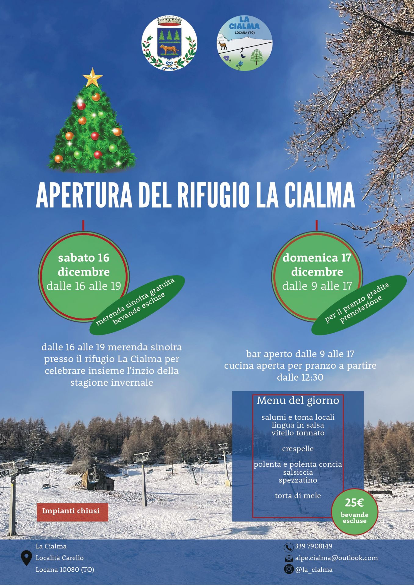 Merenda sinoira presso il rifugio La Cialma per celebrare insieme l'inizio della stagione invernale