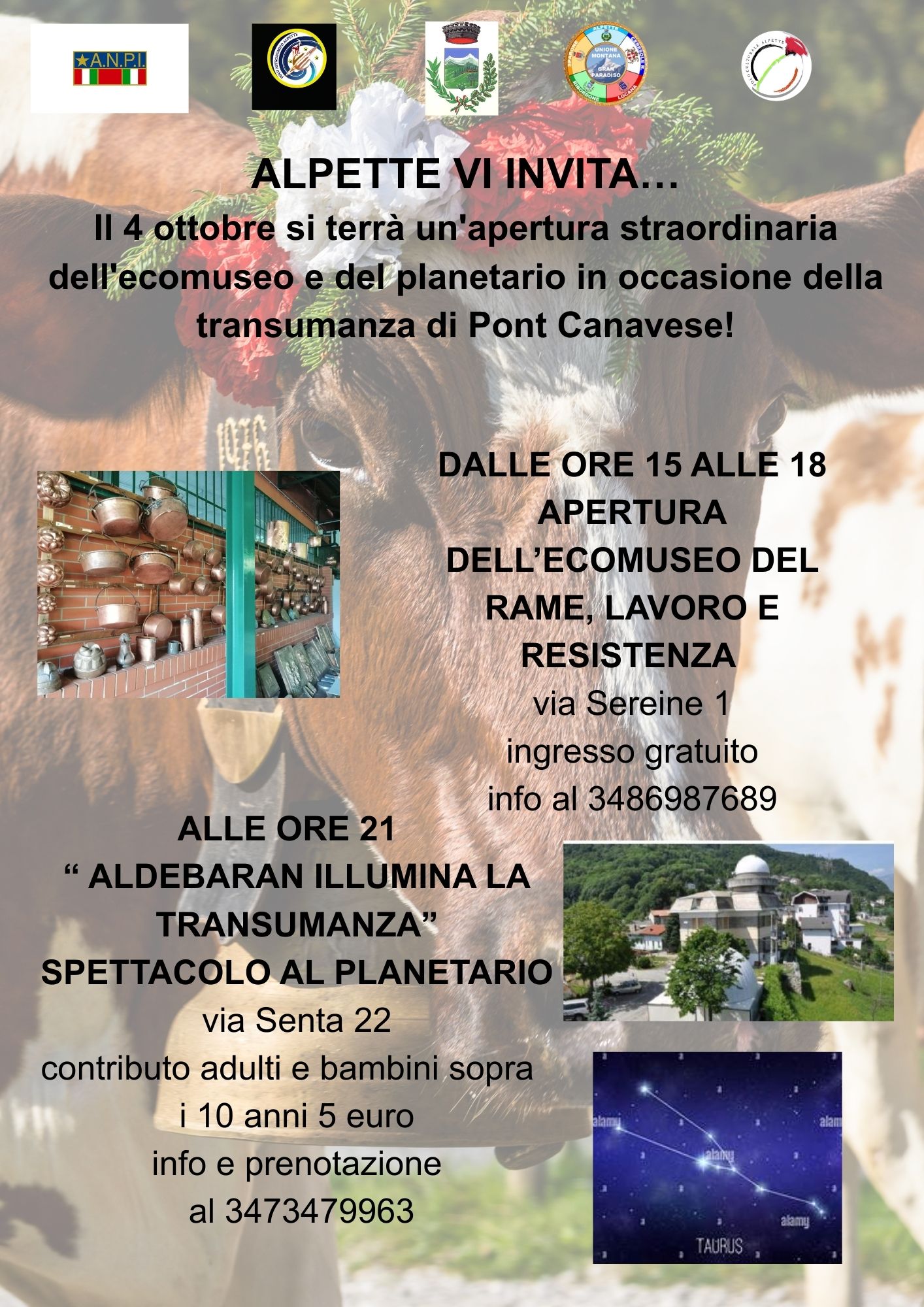 In occasione della manifestazione organizzata dal Comune di Pont Canavese denominata "Transumanza 2025" il Comune di Alpette aprirà straordinariamente: