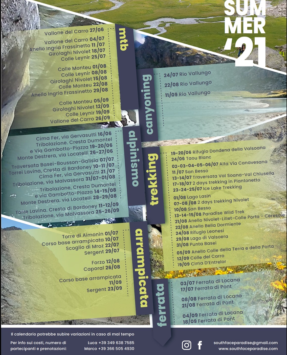 Calendario estivo Valle Orco: mtb, alpinismo, arrampicata, canyoning, trekking, ferrate