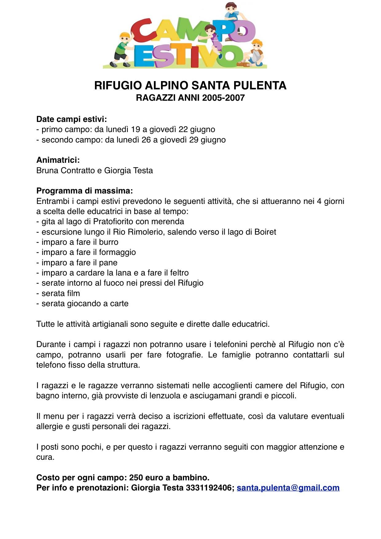 Campi Estivi al Rifugio Santa Pulenta