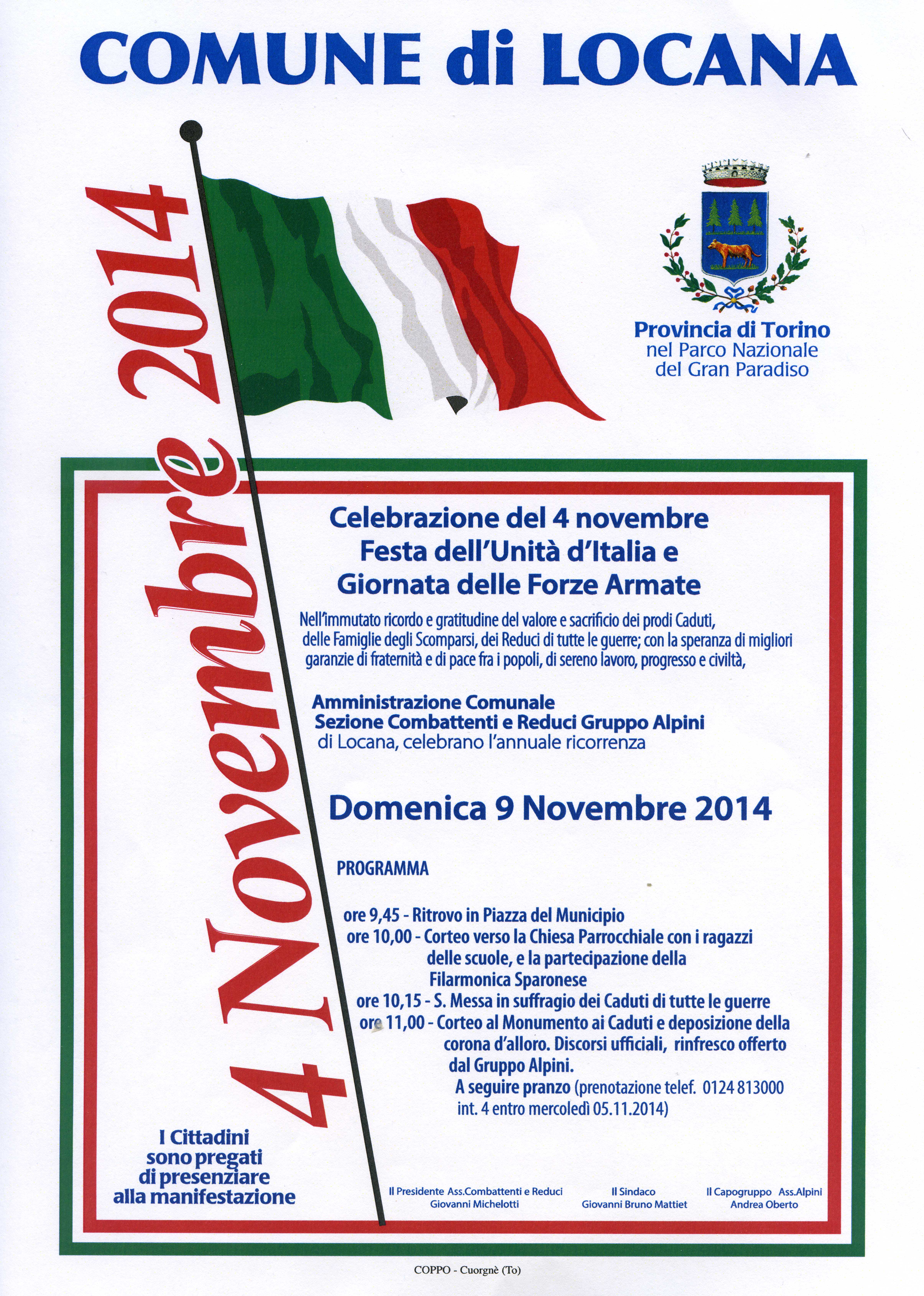 A seguire pranzo (prenotazione telef. 0124 813000 int. 4 entro mercoledì 05.11.2014)