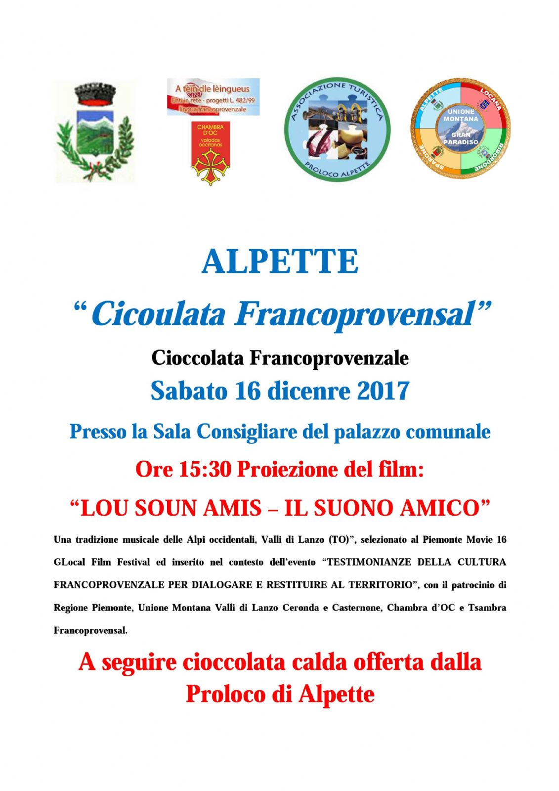 | Organizzazione | Comune e ProLoco di Alpette, Chambra d'Oc, Unione Montana Gran Paradiso |
