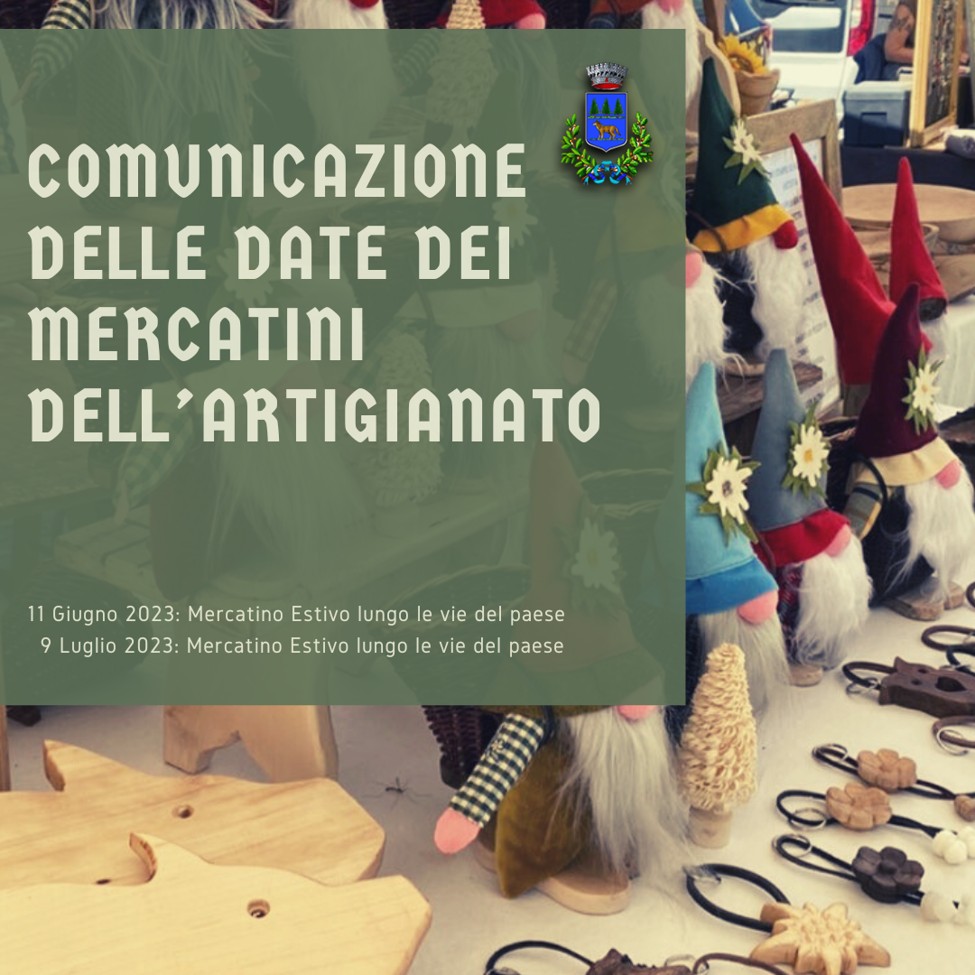Comunicazione delle date dei mercatini dell’artigianato Locana