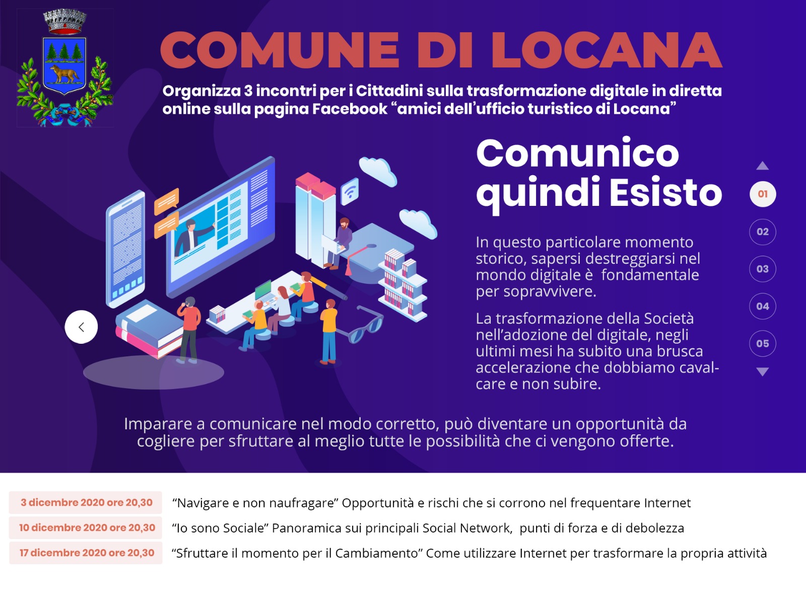 Il Comune di Locana organizza 3 incontri per i Cittadini sulla trasformazione digitale in diretta online sulla pagina Facebook "amici dell'ufficio turistico di Locana"