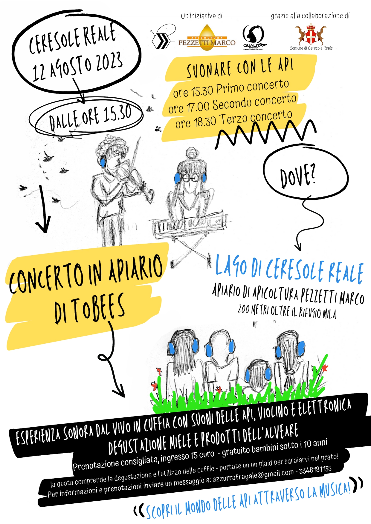 A partire dalle 15,30 sarà possibile ascoltare un concerto in cuffia con il suono delle api, violino ed elettro ed elettronica: una esperienza sonora nell'apiario dell'Apicoltura Pezzetti.