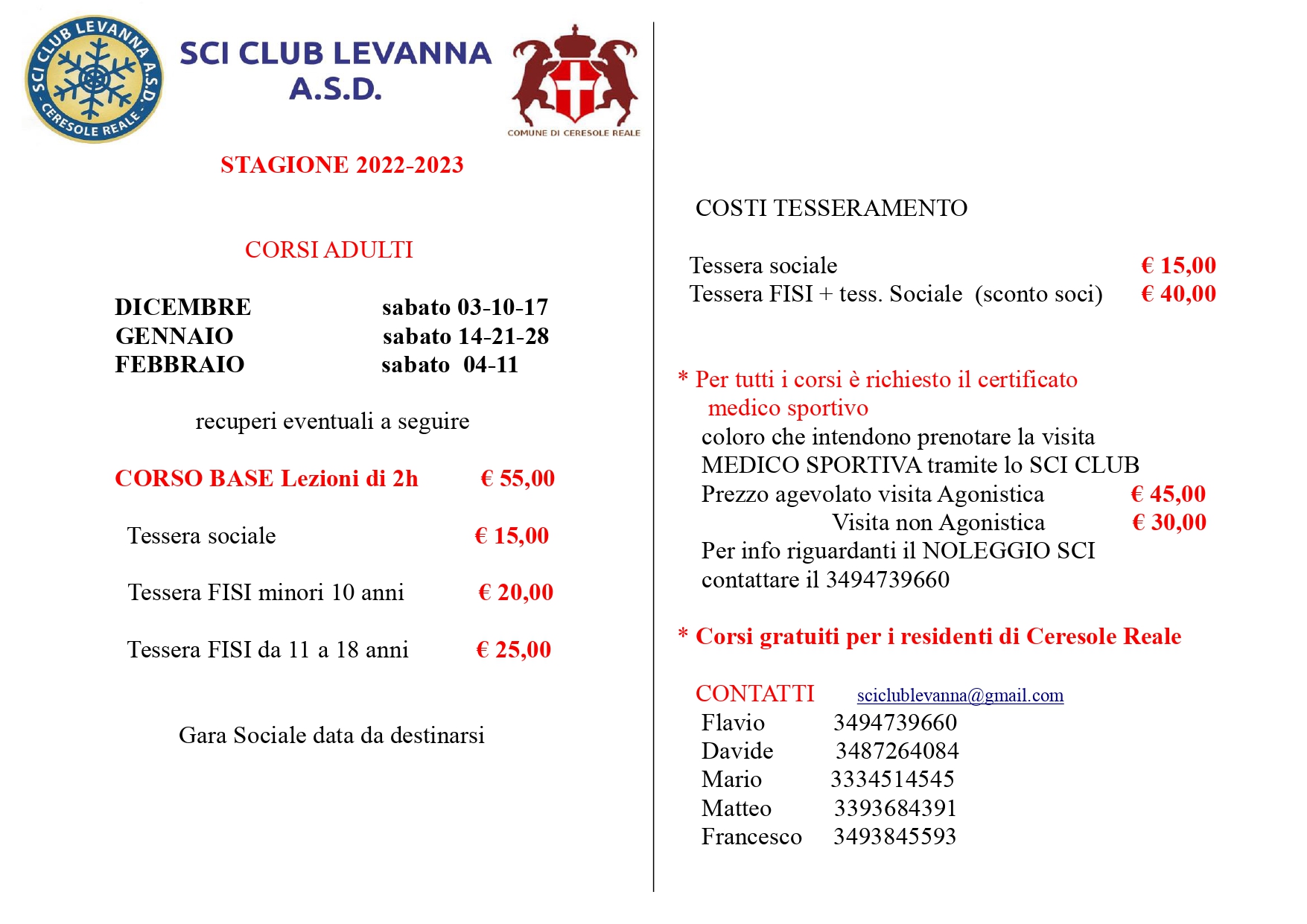 | Organizzazione | Sci Club Levanna |
