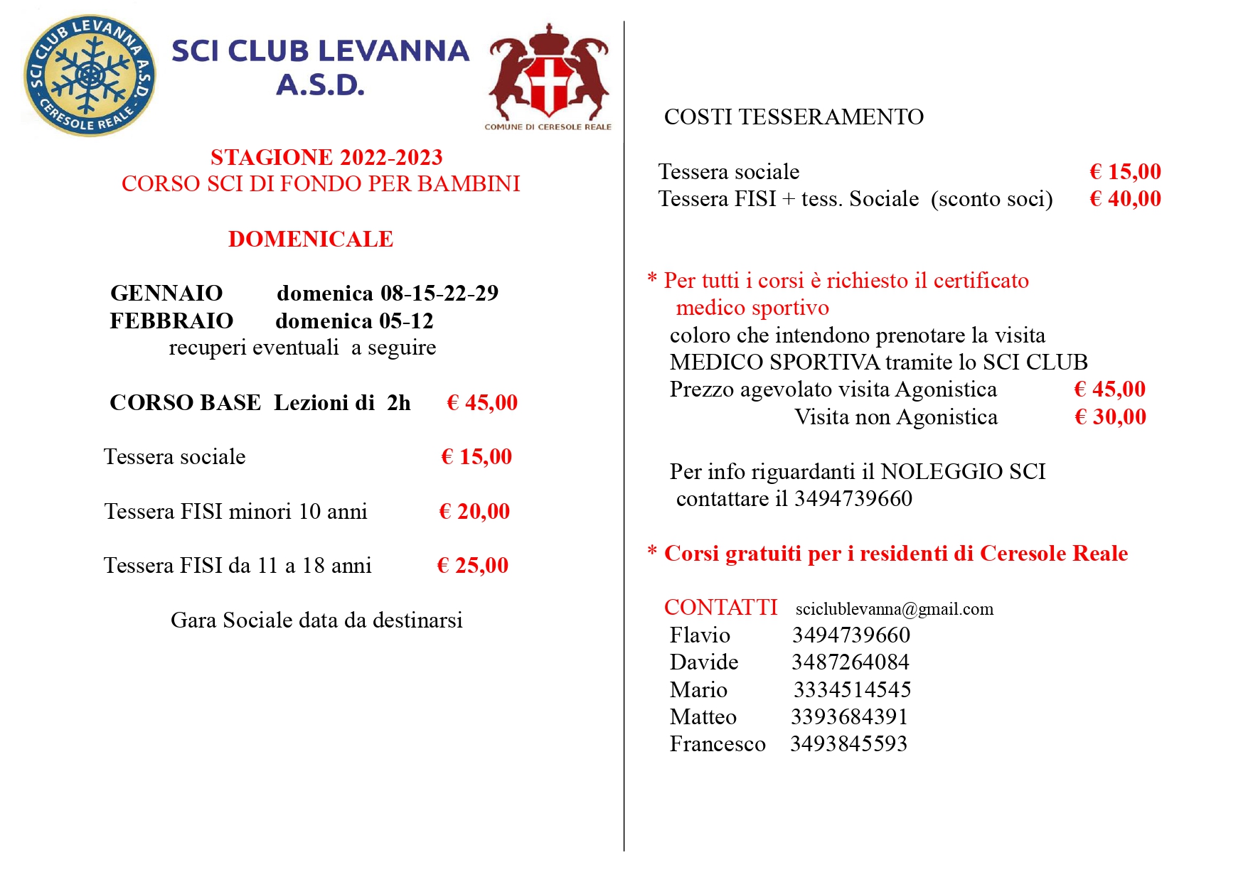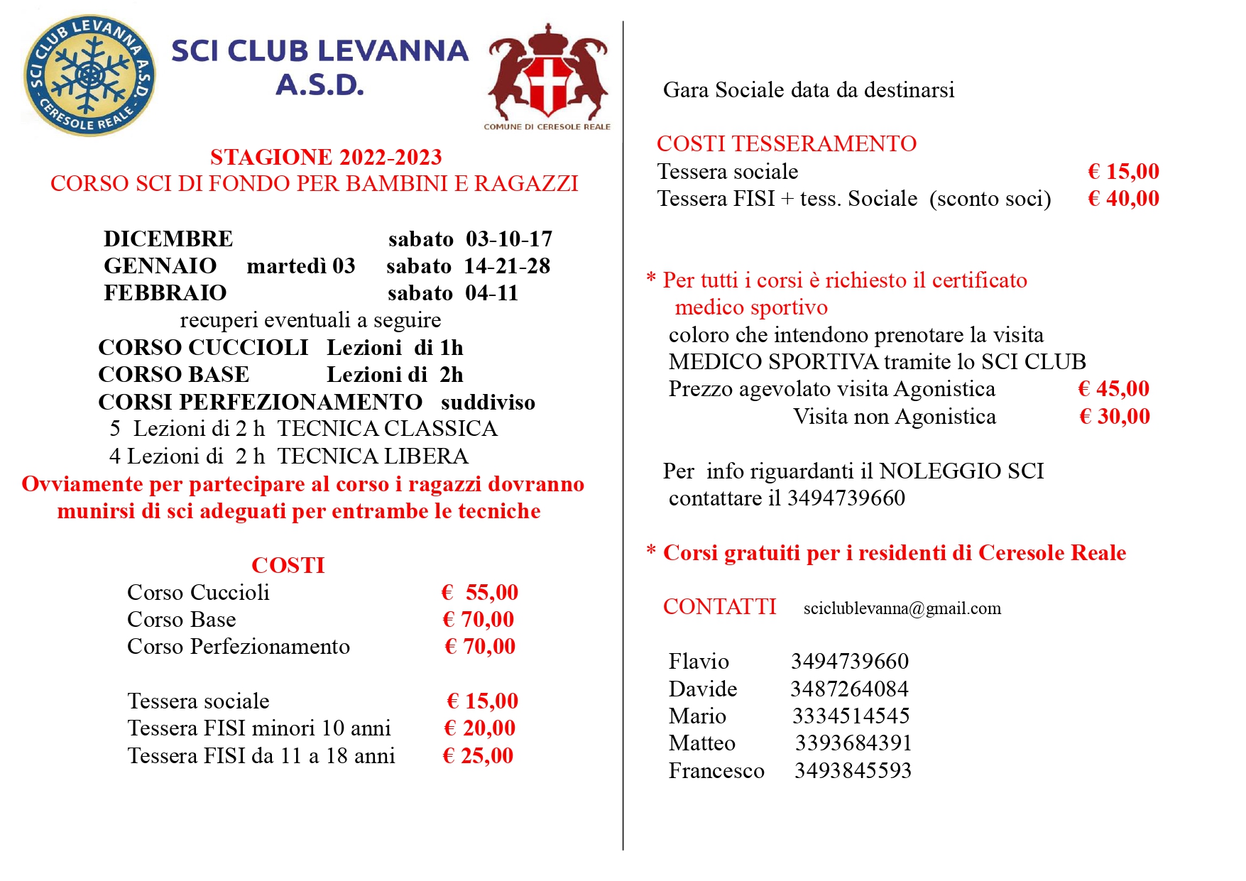 CORSI SCI DI FONDO - SCI CLUB LEVANNA