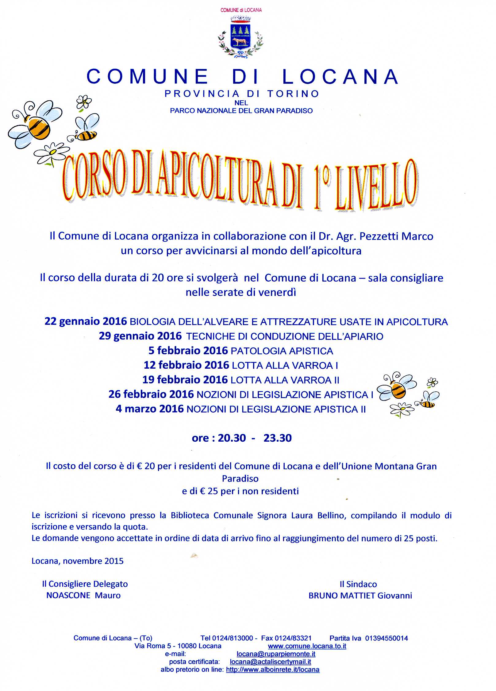 Il Comune di Locana organizza in collaborazione con il Dr. Agr. Pezzetti Marco un corso per avvicinarsi al mondo dell’apicoltura