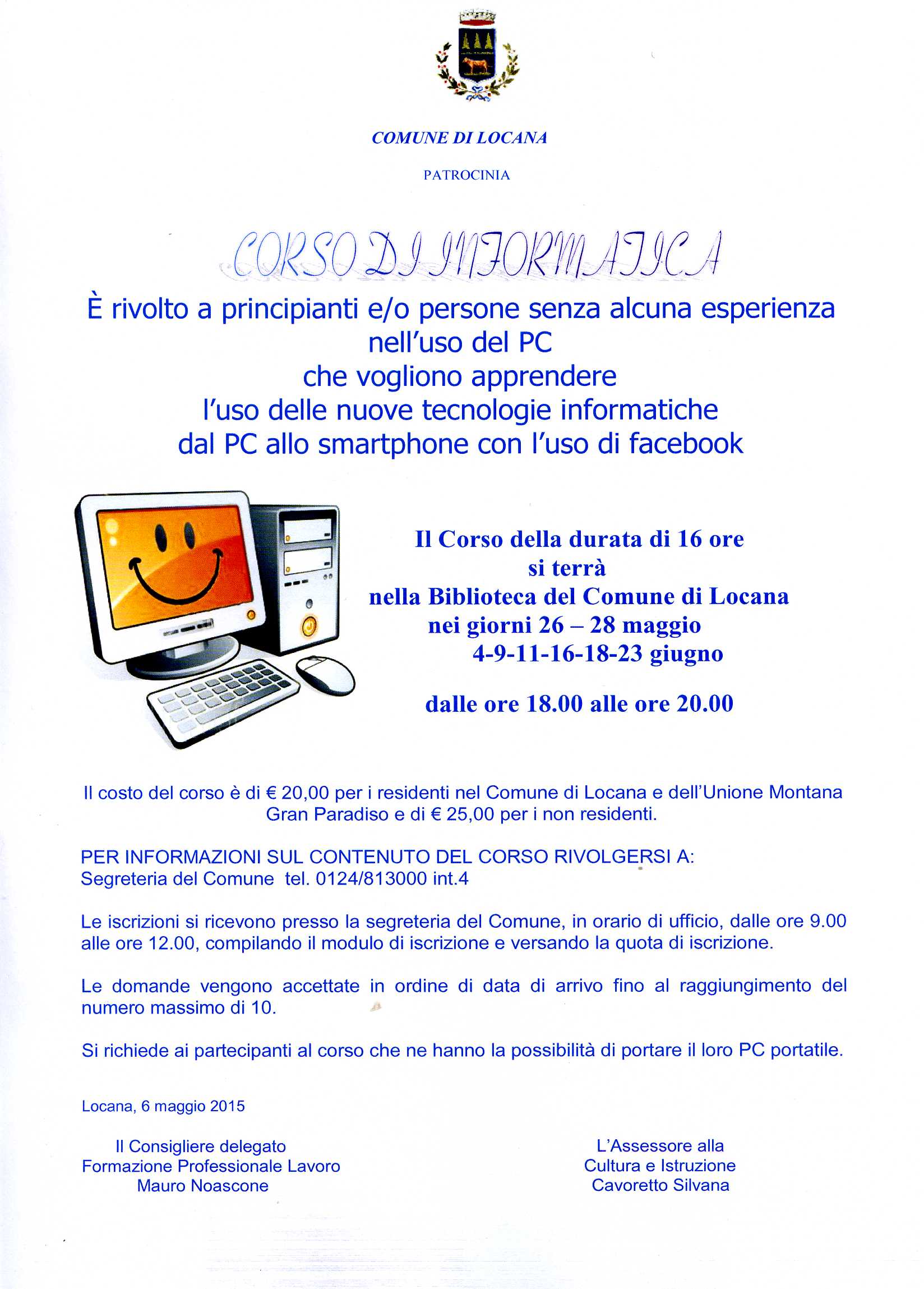 Il costo del corso è di € 20,00 per i residenti nel Comune di Locana e dell’Unione Montana Gran Paradiso e di € 25,00 per i non residenti.