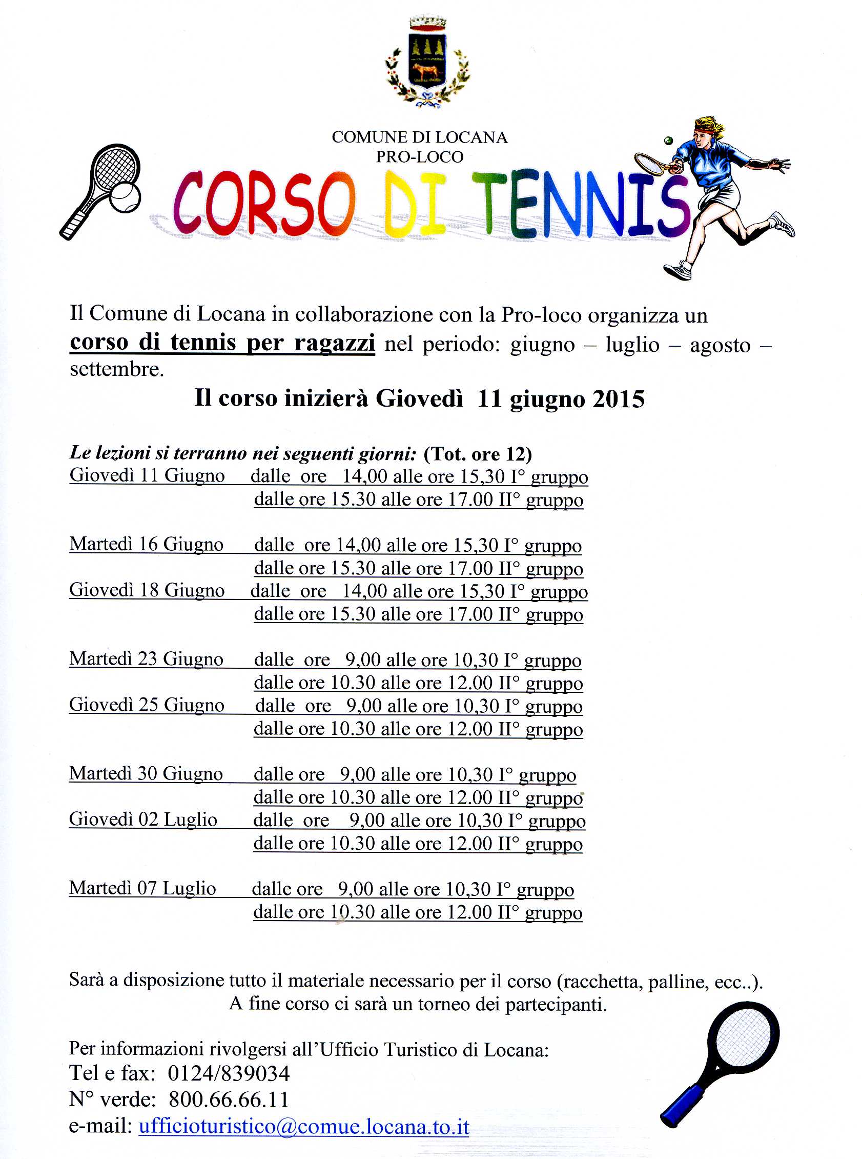 corso di tennis per ragazzi nel periodo: giugno – luglio.